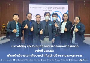เมื่อวันที่ 24-25 กรกฎาคม 2566 ณ ห้อง Co-Working Space ชั้น 1 อาคารสำนักงานอธิการบดีและบริหารสินทรัพย์ มหาวิทยาลัยกาฬสินธุ์ พื้นที่ในเมือง รองศาสตราจารย์จิระพันธ์ ห้วยแสน อธิการบดีมหาวิทยาลัยกาฬสินธุ์ ให้เกียรติเป็นประธานในพิธีเปิด “โครงการมหกรรมแลกเปลี่ยนเรียนรู้ มหาวิทยาลัยกาฬสินธุ์ ครั้งที่ 1 (KSU-Show & Share) พร้อมกล่าวให้โอวาส แก่ผู้เข้าร่วมโครงการฯ โดยผู้ช่วยศาสตราจารย์พิมพ์ลิขิต แก้วหานาม ผู้อำนวยการสถาบันวิจัยและพัฒนา มหาวิทยาลัยกาฬสินธุ์ กล่าวว่า “โครงการมหกรรมแลกเปลี่ยนเรียนรู้ มหาวิทยาลัยกาฬสินธุ์ ครั้งที่ 1 (KSU-Show & Share) มีวัตถุประสงค์เพื่อจัดกระบวนการแลกเปลี่ยนเรียนรู้แก่คณาจารย์ในประเด็นการวิจัยและบริการวิชาการ และบุคลากรสายสนับสนุนในประเด็นผลงานสร้างสรรค์ในการพัฒนางานประจำ โดยภายในโครงการจะมีการจัดกิจกรรมแลกเปลี่ยนเรียนรู้การวิจัยและบริการวิชาการ และจัดนิทรรศการและนำเสนอผลงาน โดยได้แบ่งออกเป็น 2 ด้าน 1) ด้านงานวิจัยและบริการวิชาการ และ 2) ด้านผลงานสร้างสรรค์ในการพัฒนางานประจำของบุคลากรสายสนับสนุน โดยมีผู้ส่งผลงานเข้าร่วมจัดนิทรรศจำนวน 12 ผลงาน แบ่งเป็น งานวิจัยและบริการวิชาการจำนวน 7 ผลงาน และผลงานสร้างสรรค์ของบุคลากรสายสนับสนุนจำนวน 5 ผลงาน