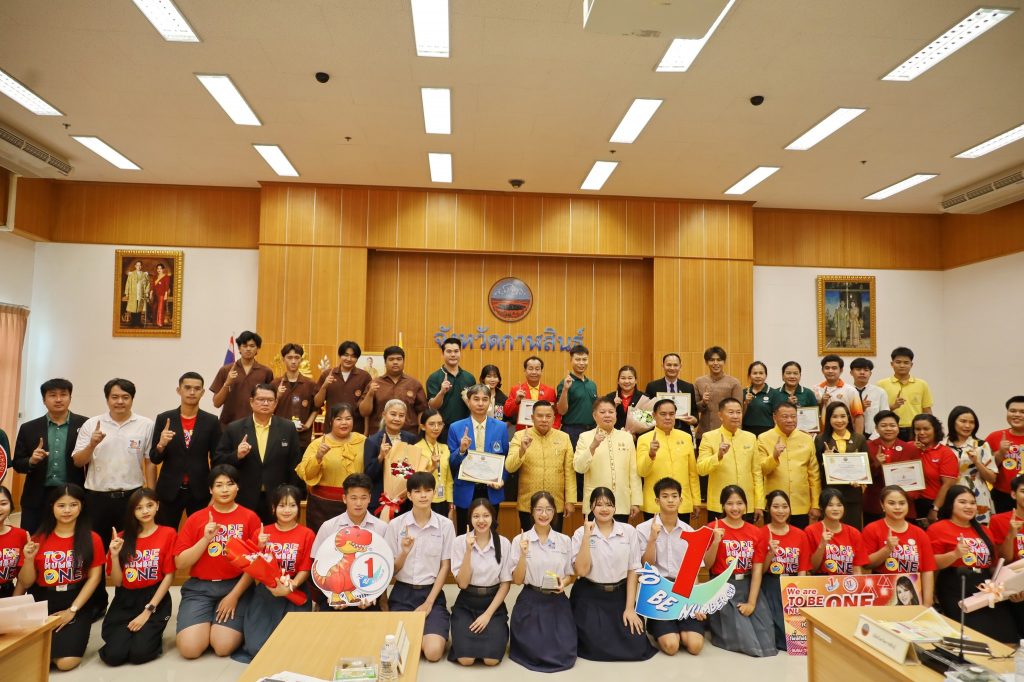 วันนี้(1 ส.ค. 2568) เวลา 10.00 น. ณ ห้องโสมพะมิตร ชั้น 4 ศาลากลางจังหวัดกาฬสินธุ์ ดร.ลิขิต ศิริสันติเมธาคม รองอธิการบดีมหาวิทยาลัยกาฬสินธุ์ พร้อมอาจารย์และนักศึกษา ชมรม TO BE NUMBER ONE มอน้ำดำ เข้ารับมอบช่อดอกไม้และเกียรติบัตร ในโอกาสได้รับพระราชทานถ้วยรางวัล ต้นแบบระดับทองและผ่านการประเมินพร้อมเป็นต้นแบบระดับเพชรปีที่ 1 จากทูลกระหม่อมหญิงอุบลรัตนราชกัญญา สิริวัฒนาพรรณวดี ในงานมหกรรมรวมพลสมาชิก TO BE NUMBER ONE ประจำปี 2568 จากนายสนั่น พงษ์อักษร ผู้ว่าราชการจังหวัดกาฬสินธุ์ ก่อนเริ่มการประชุมคณะกรมการจังหวัด และหัวหน้าส่วนราชการจังหวัดกาฬสินธุ์ ครั้งที่ 7/2568