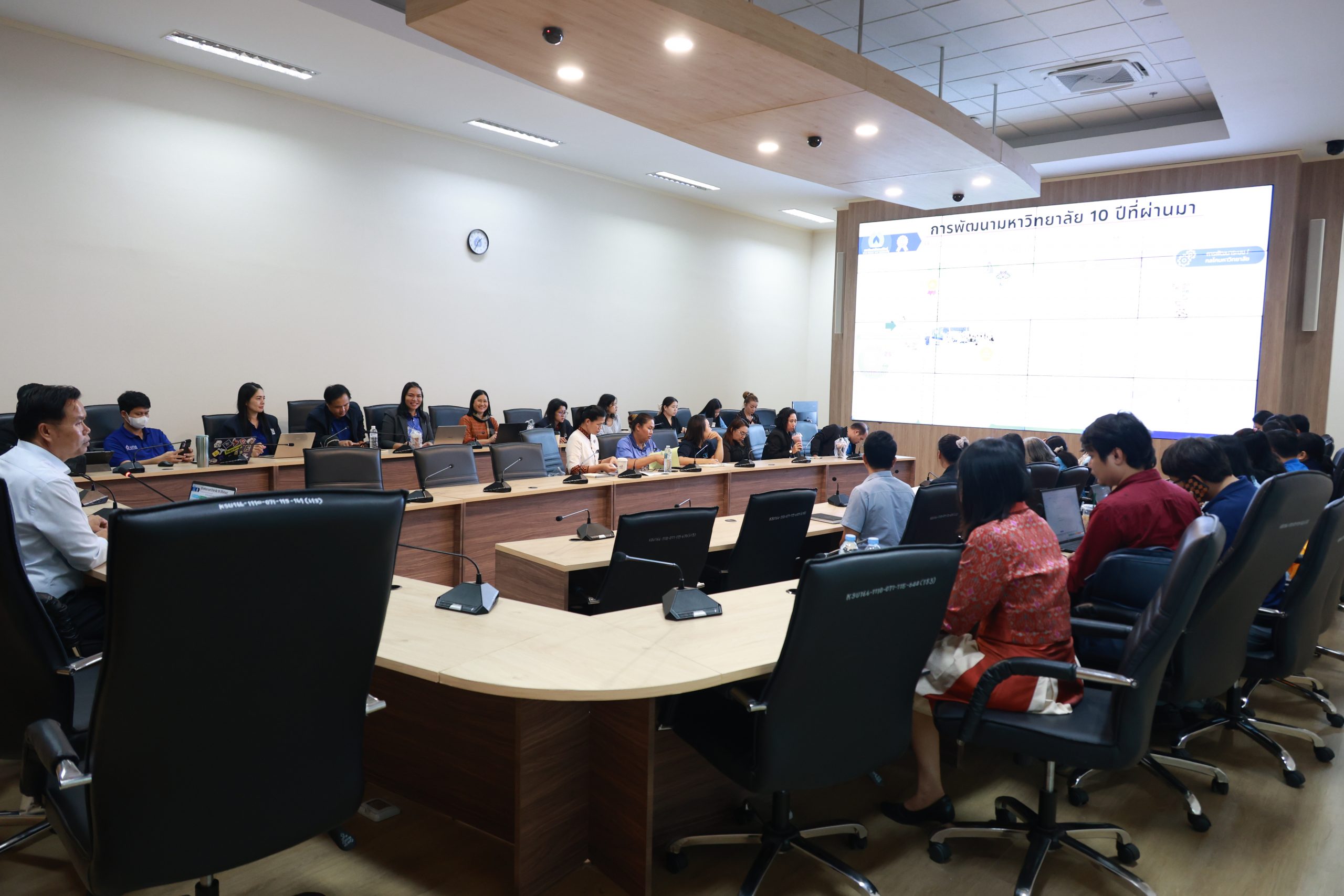 วันนี้ (2 ต.ค. 2568) เวลา 13.30 น. ณ ห้องประชุมสภามหาวิทยาลัย ชั้น 3 อาคารเฉลิมพระเกียรติกรมสมเด็จพระเทพรัตนราชสุดา ฯ 70 พรรษา มหาวิทยาลัยกาฬสินธุ์ อำเภอเมือง จังหวัดกาฬสินธุ์ ดร.ศักดิ์เกษม ปานะลาด รองอธิการบดีมหาวิทยาลัยกาฬสินธุ์ นำคณะผู้บริหารมหาวิทยาลัยกาฬสินธุ์ จัดการประชุมสำคัญเพื่อ เวทีรับฟังความเห็นบุคลากร สถาบันวิจัยและพัฒนา, สำนักส่งเสริมวิชาการและงานทะเบียน และมอบนโยบาย พร้อมถ่ายทอดแผนยุทธศาสตร์ 5 ปี สู่การปฏิบัติงานอย่างมีประสิทธิภาพ การประชุมครั้งนี้มุ่งเน้นการถ่ายทอดแผนยุทธศาสตร์การพัฒนามหาวิทยาลัยกาฬสินธุ์ ระยะ 5 ปี (พ.ศ. 2566 – 2570) ให้มีความชัดเจนและสอดคล้องกับทิศทางการพัฒนาในภาพรวม เพื่อให้บุคลากรทุกคนเข้าใจบทบาทและสามารถขับเคลื่อนภารกิจตามกลยุทธ์ได้อย่างมีประสิทธิผล นอกจากนี้ ยังเป็นการเน้นย้ำและทำความเข้าใจร่วมกันในเรื่อง ปรัชญา วิสัยทัศน์ พันธกิจ ปณิธาน อัตลักษณ์บัณฑิต รวมถึง วัฒนธรรมองค์กร C-H-A-N-G-E ของมหาวิทยาลัยกาฬสินธุ์