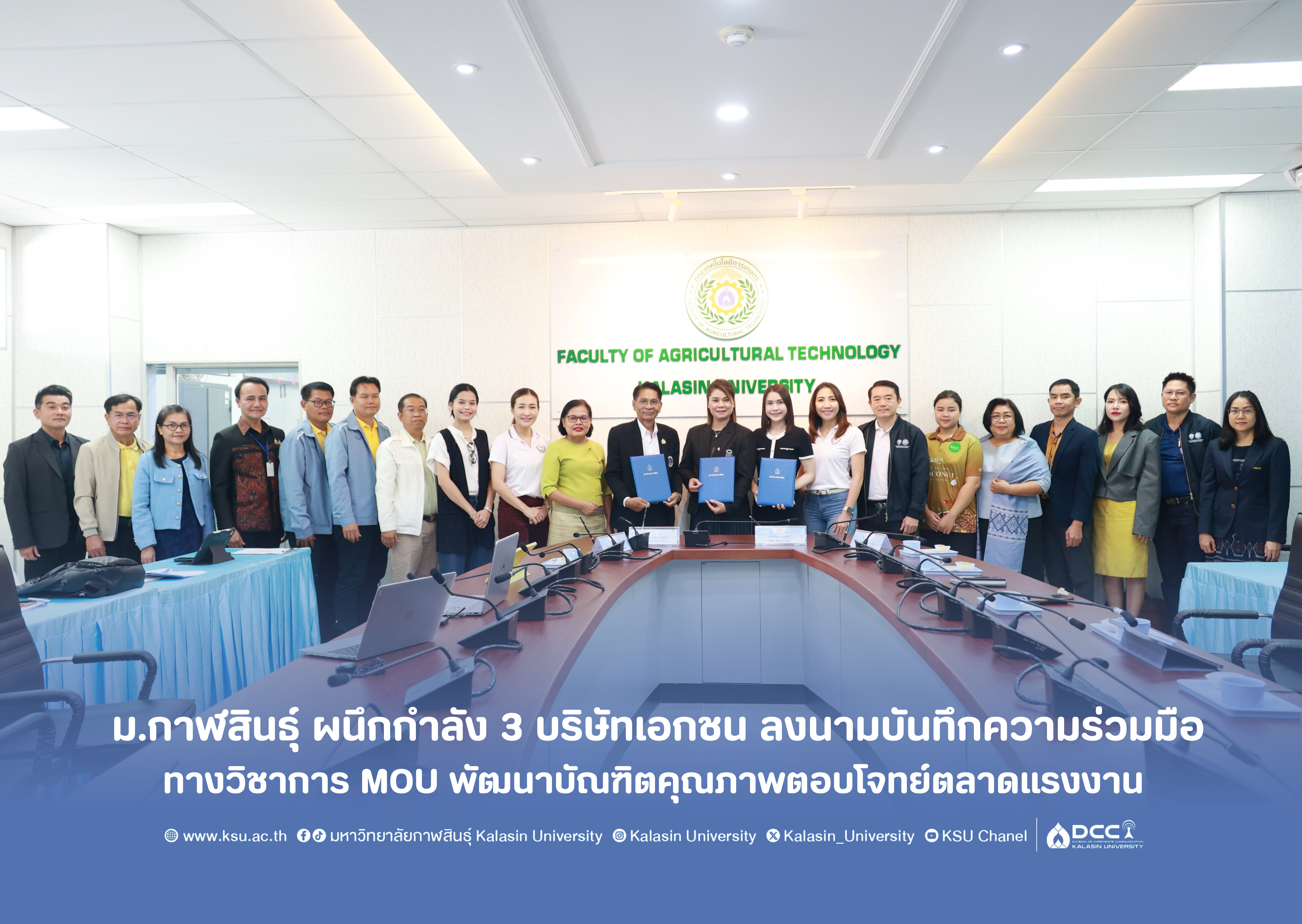 ม.กาฬสินธุ์ ผนึกกำลัง 3 บริษัทเอกชน ลงนามบันทึกความร่วมมือทางวิชาการ MOU พัฒนาบัณฑิตคุณภาพตอบโจทย์ตลาดแรงงาน