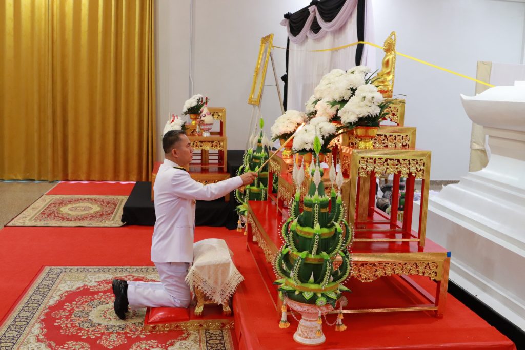 โอกาสนี้ ประธานในพิธี จุดธูปเทียนบูชาพระรัตนตรัย ประธานในพิธี จุดเครื่องทองน้อยเบื้องหน้าพระฉายาลักษณ์สมเด็จพระนางเจ้าสิริกิติ์ พระบรมราชินีนาถ พระบรมราชชนนีพันปีหลวง ศาสนพิธีกร อาราธนาศีล พระสงฆ์ให้ศีล ศาสนพิธีกร อาราธนาพระปริตร พระสงฆ์ 10 รูป สวดพระพุทธมนต์ ประธานในพิธี และผู้มีเกียรติถวายจตุปัจจัยไทยธรรมแด่พระสงฆ์ จำนวน 10 รูป ประธานในพิธี ทอดผ้าบังสุกุล พระสงฆ์สดับปกรณ์ พระสงฆ์อนุโมทนา/ถวายอดิเรก ประธานในพิธี กรวดน้ำ รับพร จากนั้นประธานในพิธีนำผู้เข้าร่วมพิธีตักบาตรพระสงฆ์ สามเณร จำนวน 93 รูป เพื่ออุทิศถวายพระราชกุศลแด่สมเด็จพระนางเจ้าสิริกิติ์ พระบรมราชินีนาถ พระบรมราชชนนีพันปีหลวง