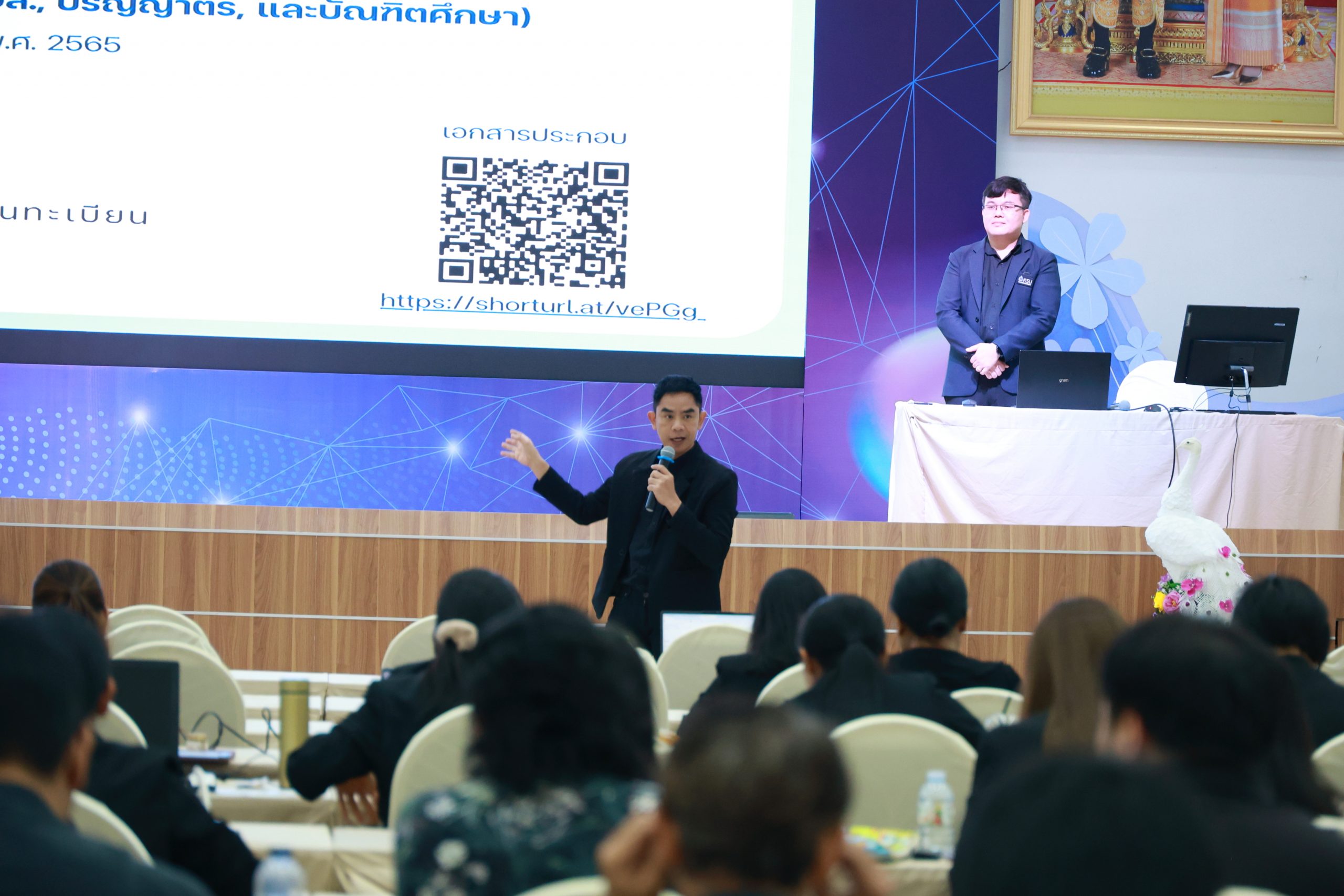วันนี้ (10 พ.ย. 2568) เวลา 09.00 น. ณ ห้องประชุมพยับหมอก ชั้น 3 อาคารเฉลิมพระเกียรติกรมสมเด็จพระเทพรัตนราชสุดาฯ 70 พรรษา มหาวิทยาลัยกาฬสินธุ์ พื้นที่ในเมือง รองศาสตราจารย์ ดร.สุพรรณ สุดสนธิ์ อธิการบดีมหาวิทยาลัยกาฬสินธุ์ เป็นประธานในพิธีเปิดโครงการอบรมเชิงปฏิบัติการแนวทางการออกแบบหลักสูตรตามมาตรฐาน (กมอ.) และตามหลักการมุ่งเน้นผลลัพธ์การเรียนรู้ของผู้เรียน และกล่าวถึงความสำคัญในการปรับปรุงหลักสูตรให้สอดคล้องกับทิศทางของมหาวิทยาลัยและมาตรฐาน กมอ. เพื่อสร้างบัณฑิตที่มีคุณภาพและมีทักษะตอบโจทย์ตลาดแรงงานในศตวรรษที่ 21 ซึ่งวัตถุประสงค์หลักคือเพื่อให้คณาจารย์สามารถออกแบบการจัดการเรียนการสอนและการวัดประเมินผลที่เชื่อมโยงกับผลลัพธ์การเรียนรู้ของผู้เรียน (CLOs-LLOs) ได้อย่างมีประสิทธิภาพ โดยมีผู้บริหาร และคณาจารย์มหาวิทยาลัยกาฬสินธุ์ ร่วมเดินหน้ายกระดับคุณภาพการศึกษา เข้าร่วมอบรมกว่า 150 คน