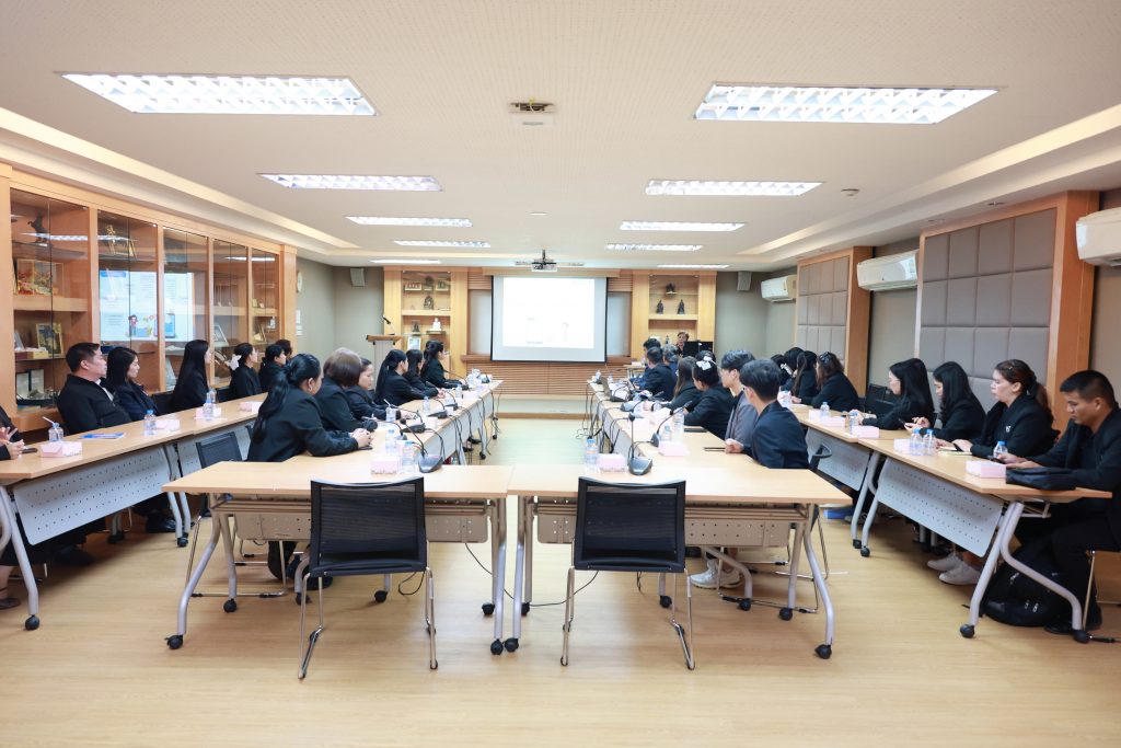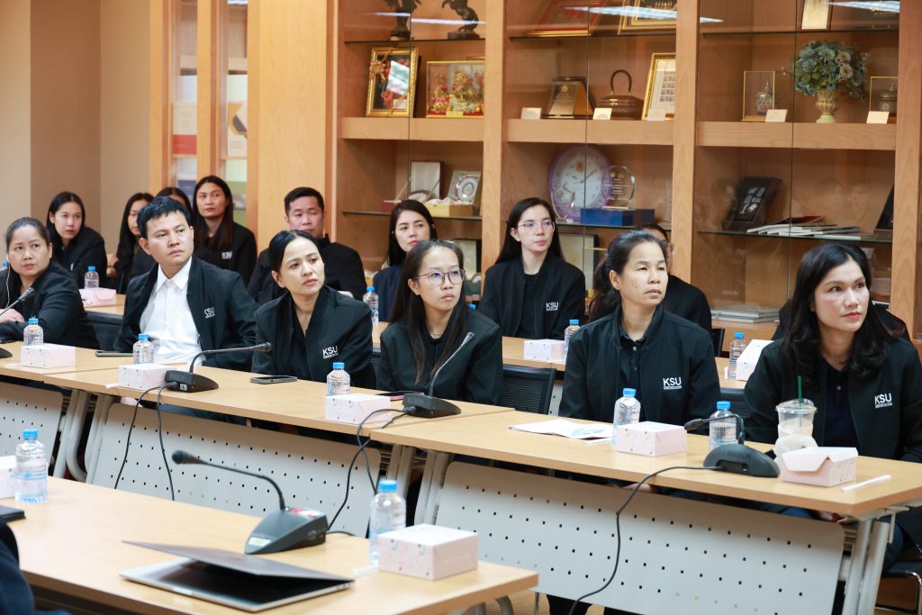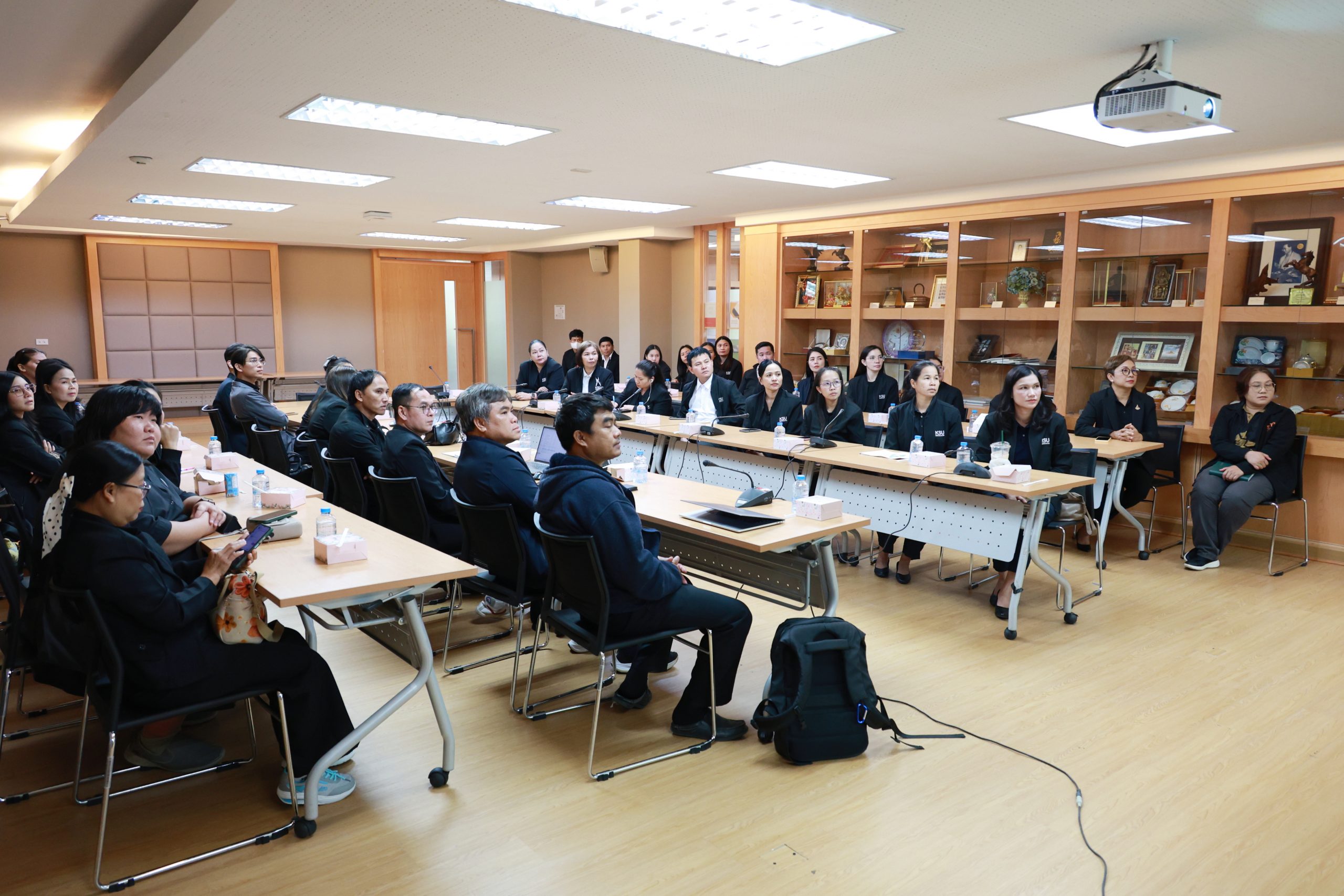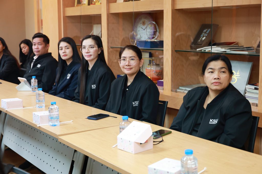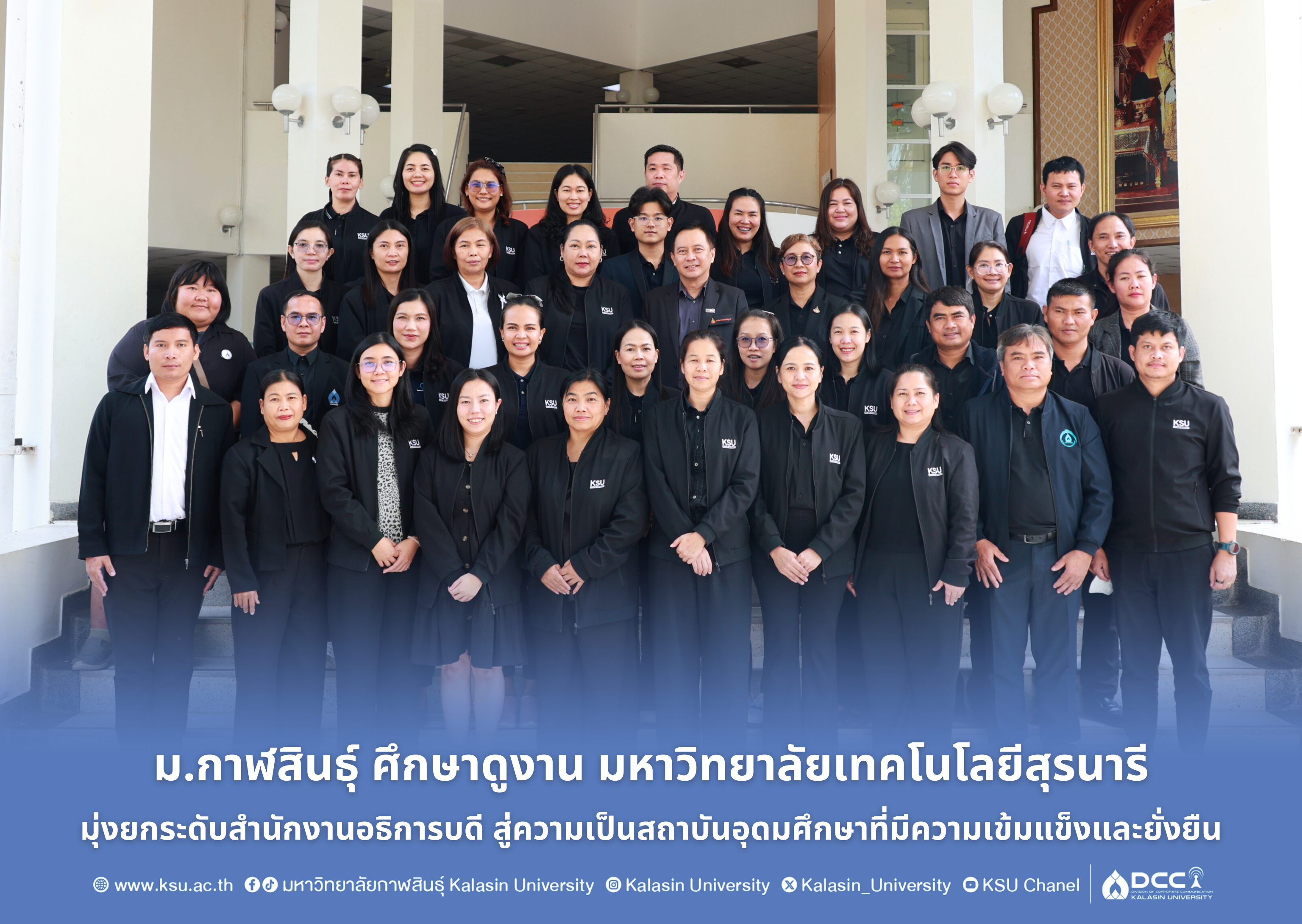 วันนี้ (13 พ.ย. 2568) เวลา 10.30 น. คณะผู้บริหารและบุคลากรจากสำนักงานอธิการบดี มหาวิทยาลัยกาฬสินธุ์ นำโดย ผู้ช่วยศาสตราจารย์มนชยา สภานุชาต ผู้ช่วยอธิการบดีด้านงานคลัง พร้อมด้วยผู้บริหารและบุคลากรในสำนักงานอธิการบดี จำนวน 40 คน ได้เดินทางเข้าศึกษาดูงาน ณ สำนักงานอธิการบดี มหาวิทยาลัยเทคโนโลยีสุรนารี จังหวัดนครราชสีมา การเดินทางครั้งนี้เป็นส่วนหนึ่งของ โครงการทบทวนแผนพัฒนาสำนักงานอธิการบดี และพัฒนาศักยภาพบุคลากรสำนักงานอธิการบดี ซึ่งจัดขึ้นระหว่างวันที่ 13-14 พฤศจิกายน 2568 โดยมีจุดมุ่งหมายเพื่อแลกเปลี่ยนเรียนรู้แนวทางการปฏิบัติงานที่เป็นเลิศ และนำมาปรับใช้เพื่อพัฒนาหน่วยงานให้มีประสิทธิภาพสูงสุด