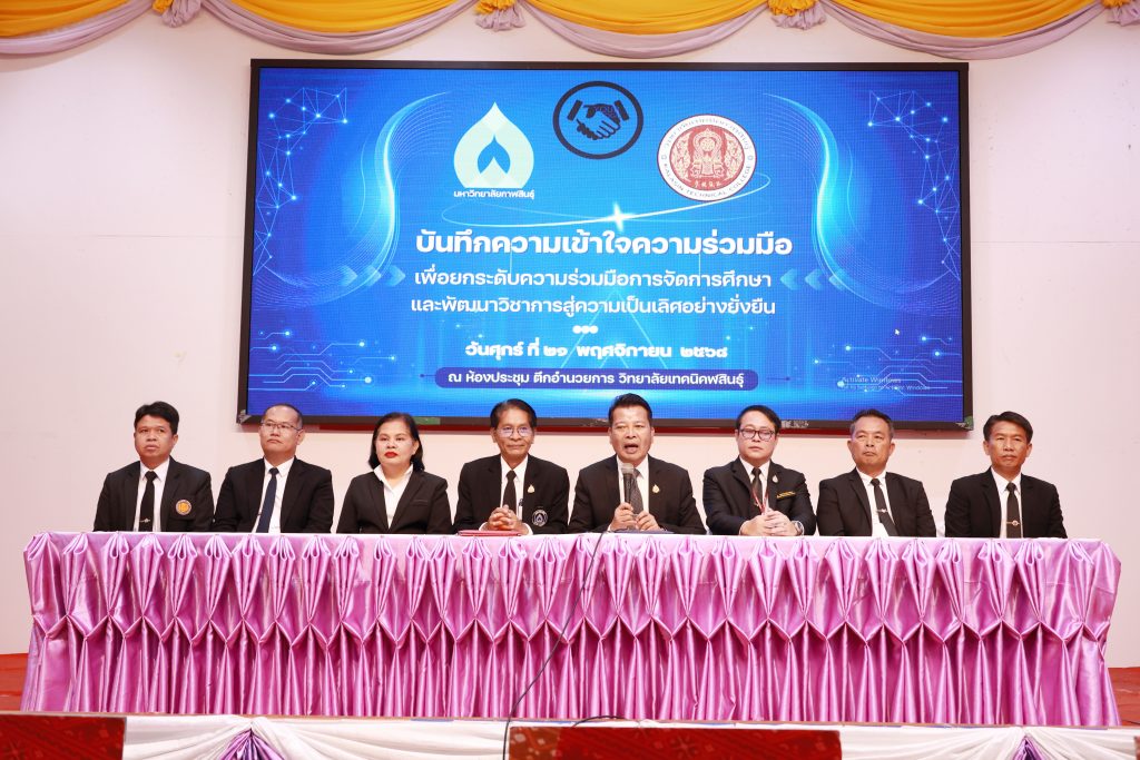 วันนี้ (21 พ.ย. 2568) เวลา 10.00 น. ณ ห้องประชุม 84 พรรษา อาคารอำนวยการ ชั้น 2 วิทยาลัยเทคนิคกาฬสินธุ์ ได้มีการจัดพิธีลงนามบันทึกข้อตกลงความร่วมมือ (MOU) ครั้งสำคัญ ระหว่าง มหาวิทยาลัยกาฬสินธุ์ โดย รองศาสตราจารย์ ดร.สุพรรณ สุดสนธิ์ อธิการบดีมหาวิทยาลัยกาฬสินธุ์ และ สำนักงานอาชีวศึกษาจังหวัดกาฬสินธุ์ ซึ่งประกอบด้วยผู้อำนวยการวิทยาลัยอาชีวศึกษาในสังกัดทั้ง 6 แห่ง นำโดย นายประดิษฐ์ ญาณประเสริฐ ผู้อำนวยการวิทยาลัยเทคนิคกาฬสินธุ์ ผู้ปฏิบัติหน้าที่ผู้อำนวยการสำนักงานอาชีวศึกษาจังหวัดกาฬสินธุ์ พร้อมด้วย นายอรุณ เลิศอุดมโชค ผู้อำนวยการวิทยาลัยการอาชีพกาฬสินธุ์ นายสุระเด่น คุนุ ผู้อำนวยการวิทยาลัยเทคนิคเขาวง นายดาวไทย เบาราญ ผู้อำนวยการวิทยาลัยการอาชีพห้วยผึ้ง นายบัญชา หวานใจ ผู้อำนวยการวิทยาลัยการอาชีพคำม่วง และนายโกศล เลิศล้ำ ผู้อำนวยการวิทยาลัยการอาชีพหนองกุงศรี โดยความร่วมมือนี้มีวัตถุประสงค์หลักเพื่อยกระดับการจัดการศึกษาและพัฒนาวิชาการสู่ความเป็นเลิศอย่างยั่งยืน โดยมี ผู้ช่วยศาสตราจารย์ ดร.อำภาศรี พ่อค้า รองอธิการบดีมหาวิทยาลัยกาฬสินธุ์ และ นายสมภาร มีอุเทน รองผู้อำนวยการวิทยาลัยเทคนิคกาฬสินธุ์ ร่วมเป็นพยานการลงนาม