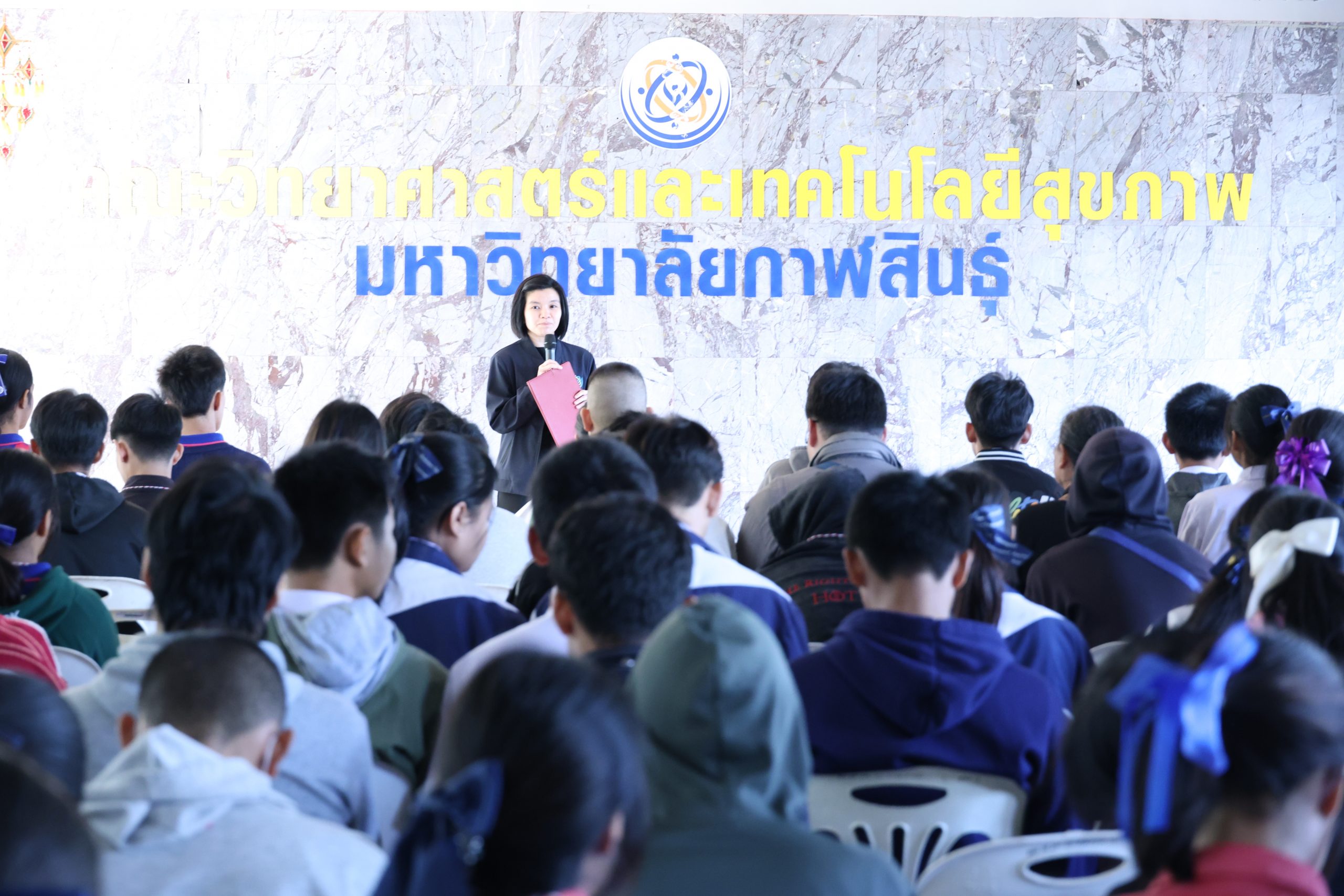 วันที่ 27 พฤศจิกายน พ.ศ. 2568 เวลา 09.00 น. ณ คณะวิทยาศาสตร์และเทคโนโลยีสุขภาพ มหาวิทยาลัยกาฬสินธุ์ (พื้นที่นามน) ตำบลสงเปลือย อำเภอนามน จังหวัดกาฬสินธุ์ ผู้ช่วยศาสตราจารย์อนงค์นาถ โรจนกรวังคำหาญ รองคณบดีงานบริการการศึกษาและวิจัย คณะวิทยาศาสตร์และเทคโนโลยีสุขภาพ มหาวิทยาลัยกาฬสินธุ์ ให้เกียรติเป็นประธานเปิดโครงการการแข่งขัน Health-Tech Pioneer Hackathon ภายใต้แนวคิด “สร้างสรรค์นวัตกรรม AI เพื่อสุขภาพ” โดยมุ่งส่งเสริมการพัฒนาเทคโนโลยีดิจิทัลสำหรับเยาวชน ผ่านกิจกรรมการแข่งขันเชิงปฏิบัติการในรูปแบบ Hackathon ระยะสั้น