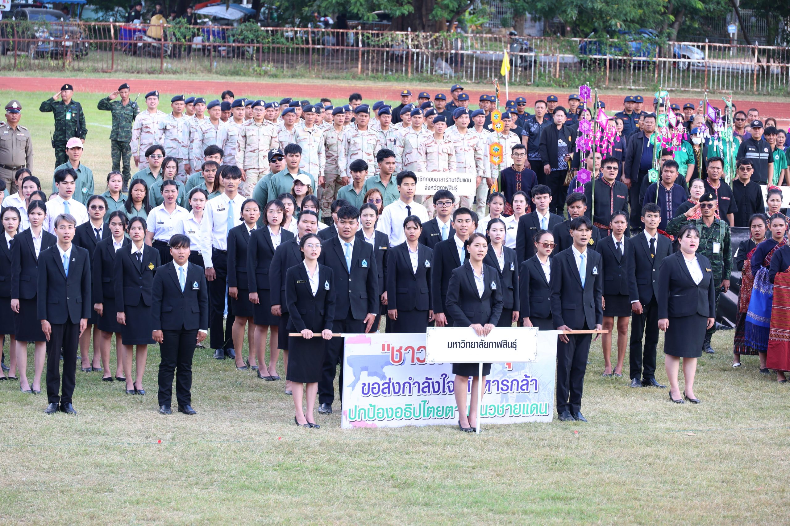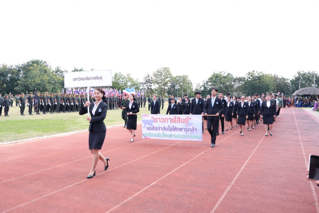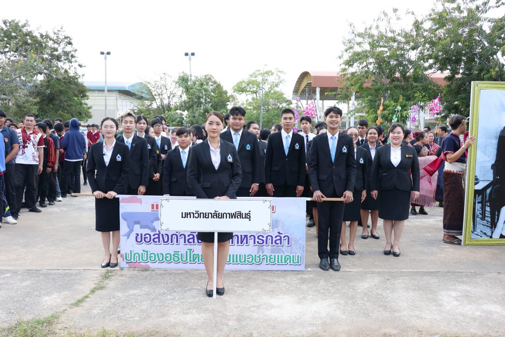 วันนี้ ( 8 ธันวาคม 2568) วลา 15.00 น. ณ สนามกีฬากลางจังหวัดกาฬสินธุ์ อำเภอเมืองกาฬสินธุ์ จังหวัดกาฬสินธุ์ ผู้ช่วยศาสตราจารย์ ดร.คมสันทิ์ ขจรปัญญาไพศาล รองอธิการบดีมหาวิทยาลัยกาฬสินธุ์ นำบุคลากร และนักศึกษามหาวิทยาลัยกาฬสินธุ์ ร่วมกิจกรรม “วันรวมพลังมวลชนกาฬสินธุ์สามัคคี” และพิธีกระทําสัตย์ปฏิญาณตนและสวนสนามของนักศึกษาวิชาทหาร ประจำปีการศึกษา 2568 โดยพล.ท.ปิยะพณห์ ฐิตวัฒนานนท์ แม่ทัพน้อยที่ 2 เป็นประธานเปิดกิจกรรม เพื่อเป็นการแสดงออกถึงความรัก ความสามัคคี รวมทั้งแสดงพลังการมีส่วนร่วมของมวลชนในพื้นที่จังหวัดกาฬสินธุ์ รวมถึงแสดงพลังความจงรักภักดีเทิดทูนสถาบันหลักของชาติ ตลอดจนการแสดงศักยภาพของเยาวชน คนรุ่นใหม่ โดยมี นายสุวรรธณ์ เข็มธนเพ็ชร รองผู้ว่าราชการจังหวัดกาฬสินธุ์ รักษาราชการแทนผู้ว่าราชการจังหวัดกาฬสินธุ์ พล.ต.กิตติพงษ์ เนื่องชมภู ผู้บัญชาการมณฑลทหารบกที่ ๒๓ นายธนภัทร ณ ระนอง รองผู้ว่าราชการจังหวัดกาฬสินธุ์ ปลัดจังหวัดกาฬสินธุ์ หัวหน้าส่วนราชการ องค์กรปกครองส่วนท้องถิ่น ผู้บริหารสถานศึกษา รัฐวิสาหกิจ ภาคเอกชน นักศึกษา นักเรียน และนักศึกษาวิชาทหาร
