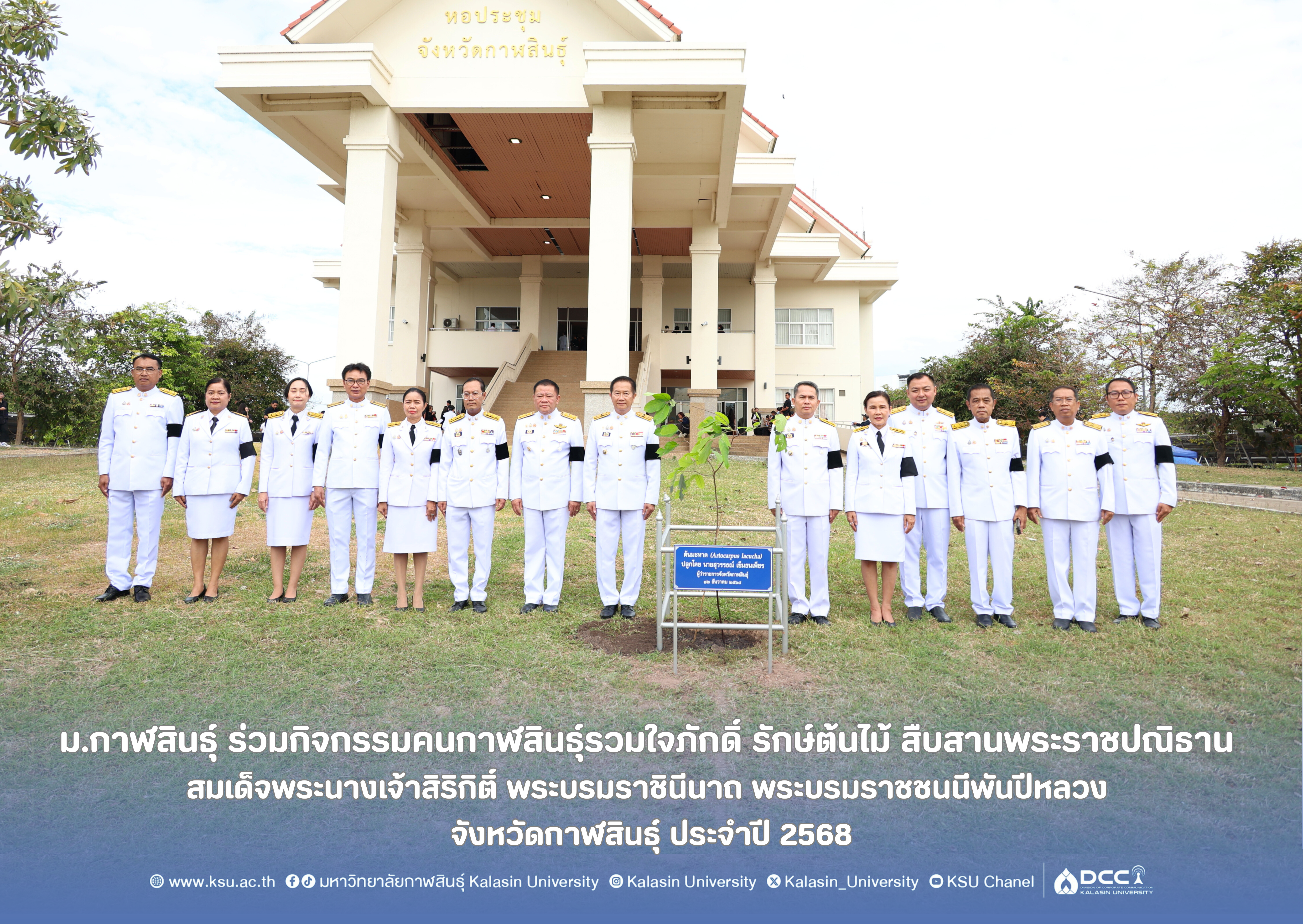ม.กาฬสินธุ์ ร่วมกิจกรรมคนกาฬสินธุ์รวมใจภักดิ์ รักษ์ต้นไม้ สืบสานพระราชปณิธาน สมเด็จพระนางเจ้าสิริกิติ์ พระบรมราชินีนาถ พระบรมราชชนนีพันปีหลวง จังหวัดกาฬสินธุ์ ประจำปี 2568