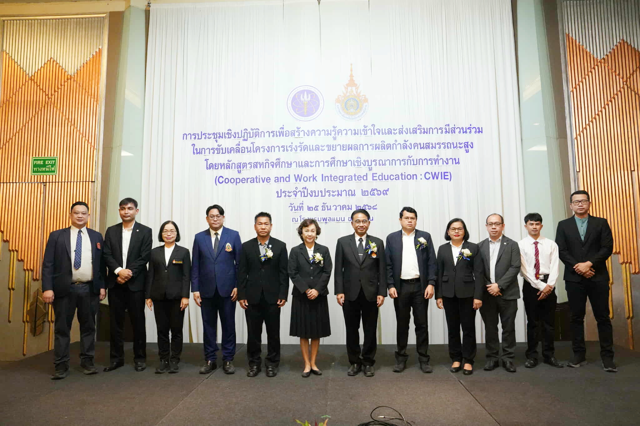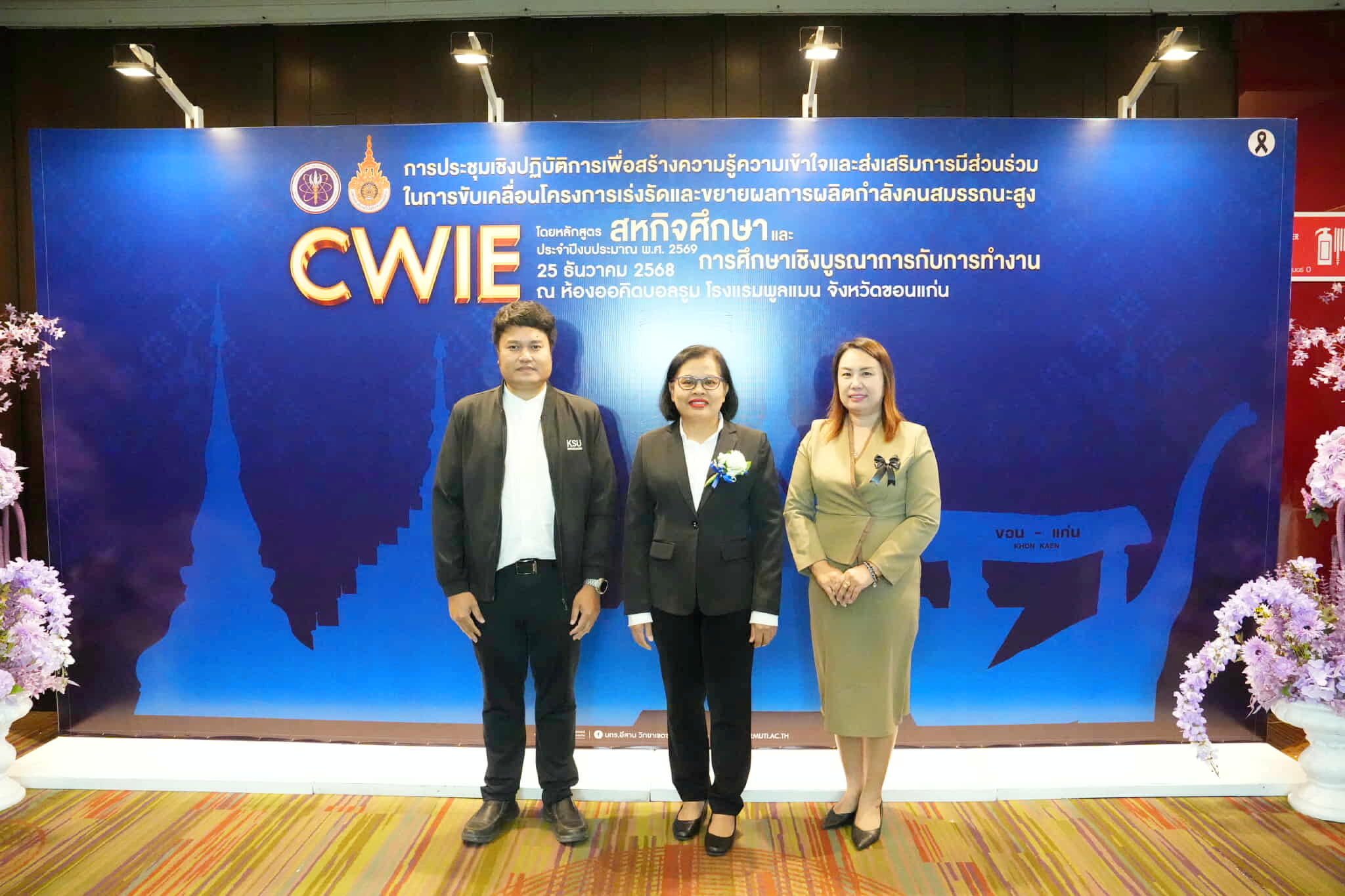 วันนี้ (25 ธันวาคม 2568) เวลา 08.00 น. ณ ห้องประชุมออร์คิด ชั้น 2 โรงแรมพูลแมน จังหวัดขอนแก่น ผู้ช่วยศาสตราจารย์ ดร.อำภาศรี พ่อค้า พร้อมด้วย ผศ.จิรัฐติ ธรรมศิริ ผศ.กัลยรัศมิ์ ทิณรัตน์ และบุคลากรงานส่งเสริมหลักสูตรและฝึกประสบการณ์วิชาชีพ สำนักส่งเสริมวิชาการและงานทะเบียน มหาวิทยาลัยกาฬสินธุ์ เข้าร่วมการประชุมเชิงปฏิบัติการเพื่อสร้างความรู้ความเข้าใจ และส่งเสริมการมีส่วนร่วมในการขับเคลื่อนโครงการเร่งรัดและขยายกำลังคนสมรรถนะสูง โดยหลักสูตรสหกิจศึกษาและการศึกษาเชิงบูรณาการกับการทำงาน (Cooperative and Work Integrated Education: CWIE) ประจำปีงบประมาณ พ.ศ.2569 โดยมี นายวันนี นนท์ศิริ ผู้ตรวจราชการกระทรวงการอุดมศึกษา วิทยาศาสตร์ วิจัยและนวัตกรรม (อว.) เป็นประธานเปิดการประชุมและกล่าวต้อนรับผู้เข้าร่วมงานประชุม โดยมีวัตถุประสงค์หลักเพื่อสร้างความเข้าใจในกระบวนการจัดหลักสูตร CWIE ที่ตอบโจทย์ภาคอุตสาหกรรม (Demand Driven) พร้อมเปิดเวทีแลกเปลี่ยนประสบการณ์ระหว่างสถาบันอุดมศึกษาและสถานประกอบการ เพื่อสร้างเครือข่ายความร่วมมือที่ยั่งยืน