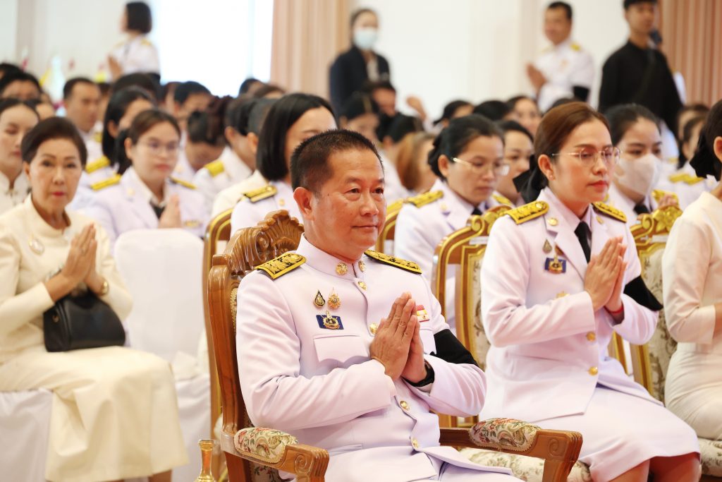 ม.กาฬสินธุ์ ร่วมพิธีเจริญพระพุทธมนต์และพิธีทำบุญตักบาตร ถวายเป็นพระราชกุศล พิธีวางพุ่มดอกไม้และถวายราชสดุดี เนื่องใน “วันสมเด็จพระเจ้าตากสินมหาราช”