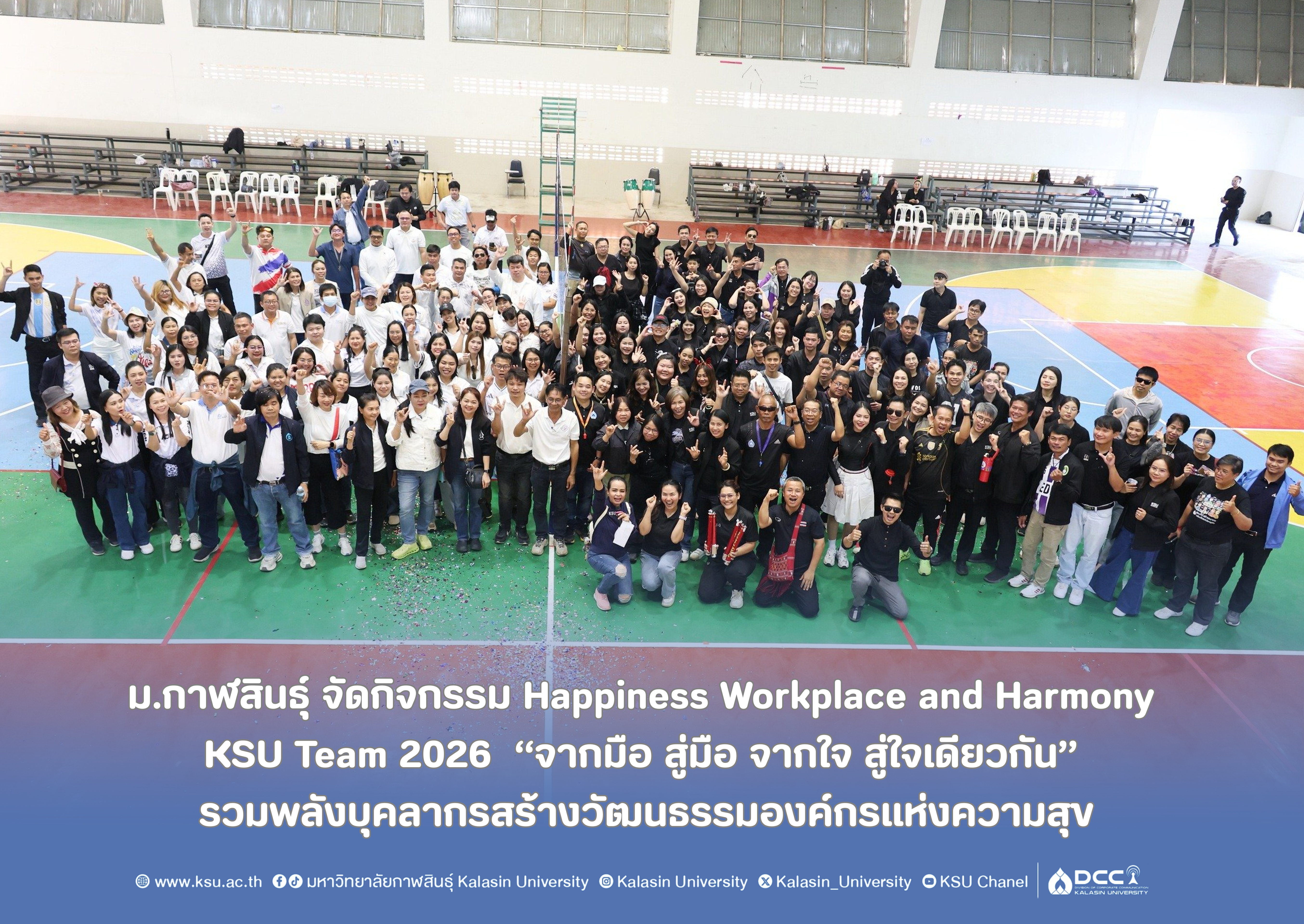 ม.กาฬสินธุ์ จัดกิจกรรม Happiness Workplace and Harmony KSU Team 2026 “จากมือ สู่มือ จากใจ สู่ใจเดียวกัน” รวมพลังบุคลากรสร้างวัฒนธรรมองค์กรแห่งความสุข