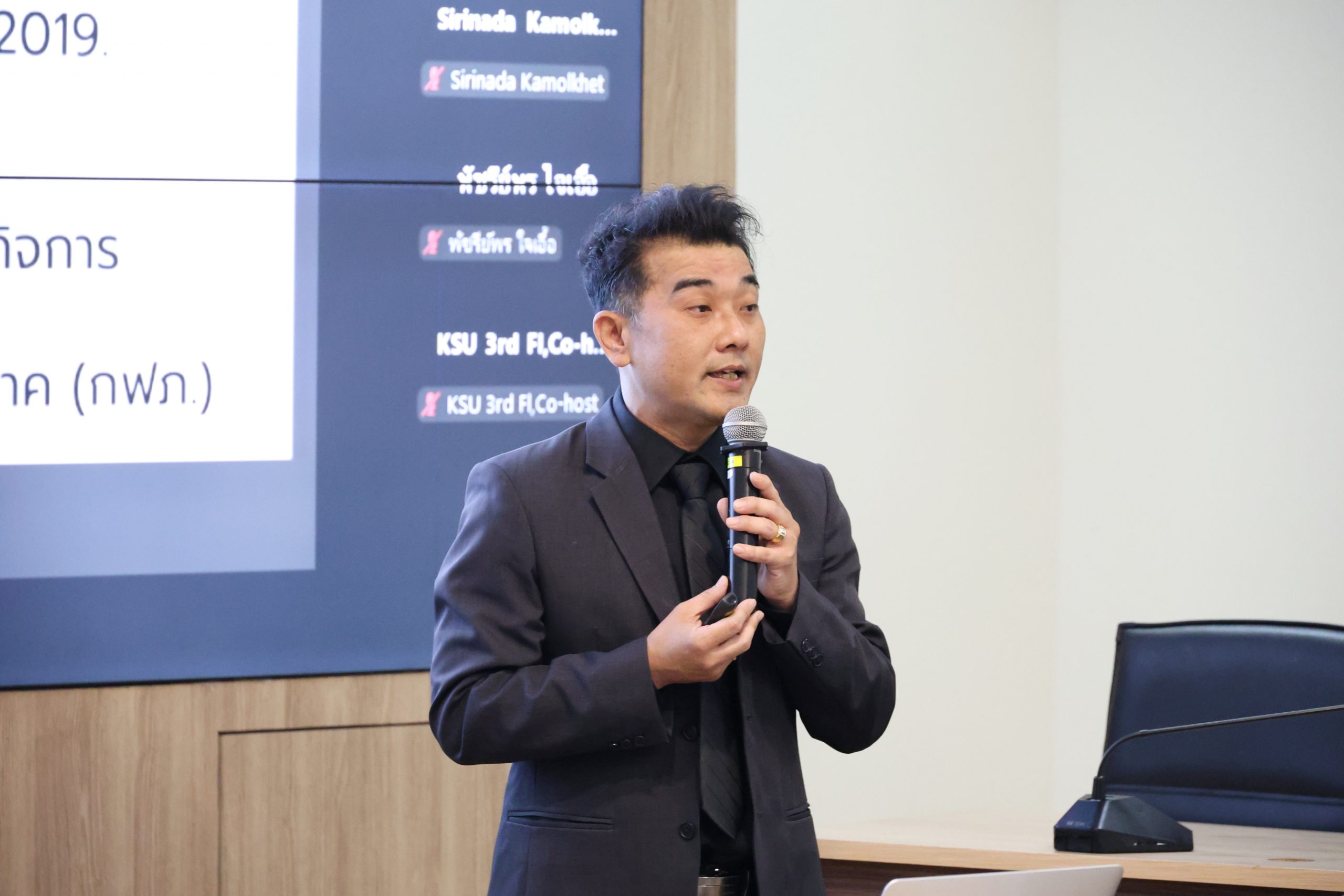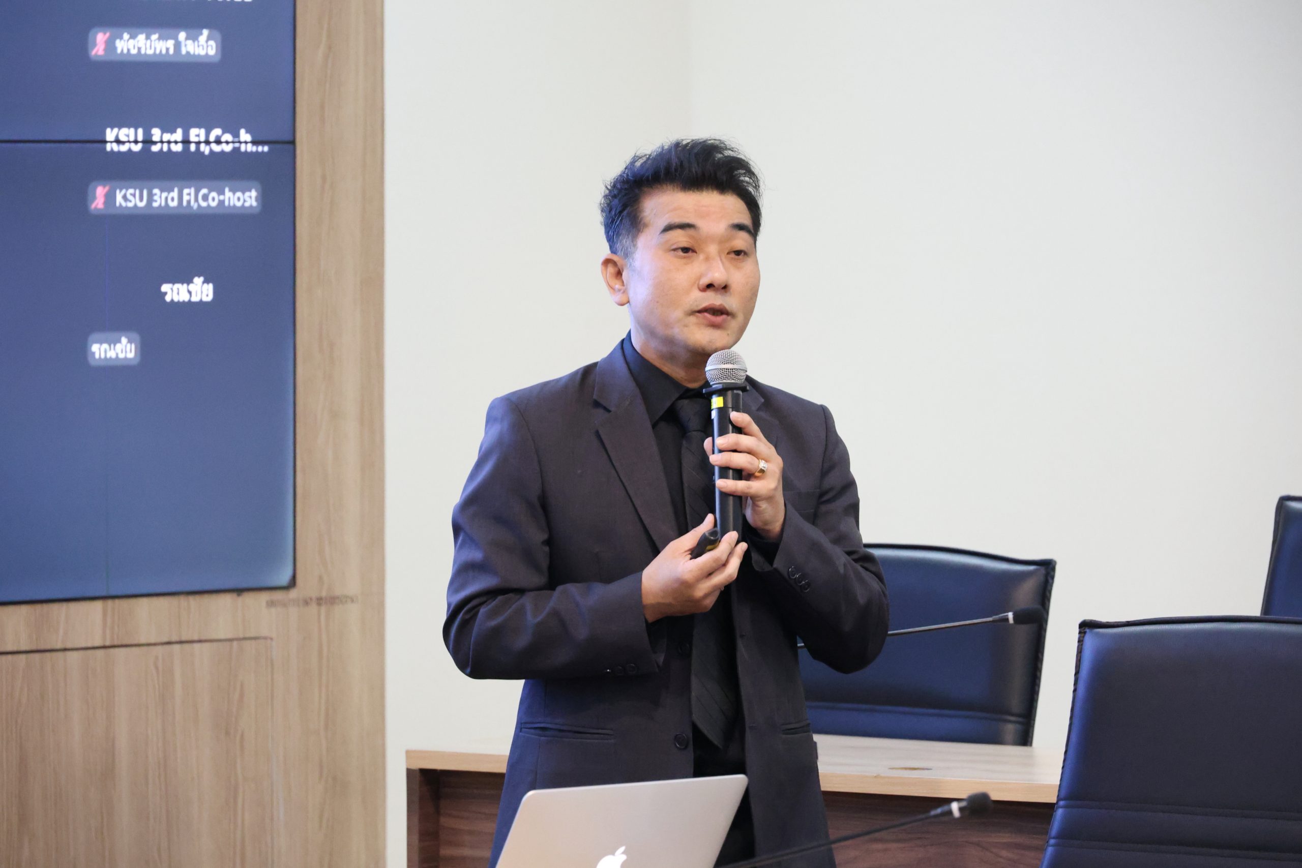 บรรยากาศการนำเสนอและกระบวนการสรรหา ดร.สรายุทธ ฐิตะภาส ได้นำเสนอนโยบายและแผนพัฒนาคณะ ครอบคลุมทั้งด้านการบริหารจัดการการเรียนการสอน การวิจัย และการบริการวิชาการ พร้อมทั้งตอบข้อซักถามจากคณาจารย์และบุคลากรที่เข้าร่วมรับฟังอย่างใกล้ชิด ทั้งที่อยู่ในห้องประชุมและผู้ที่รับฟังผ่านระบบออนไลน์ (Zoom Meeting) ภายหลังเสร็จสิ้นการตอบข้อซักถาม ผู้เข้ารับการสรรหาได้เข้าสู่กระบวนการสัมภาษณ์เชิงลึกต่อคณะกรรมการสรรหา เพื่อให้คณะกรรมการได้พิจารณาถึงความเหมาะสม ทัศนคติ และความสามารถในการขับเคลื่อนคณะวิศวกรรมศาสตร์และเทคโนโลยีอุตสาหกรรมให้บรรลุวัตถุประสงค์ตามยุทธศาสตร์ของมหาวิทยาลัยต่อไป