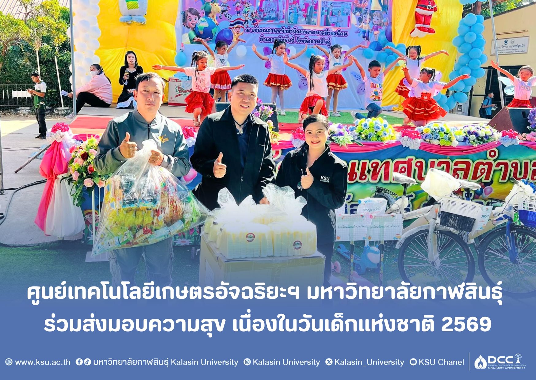วันที่ 9 มกราคม 2569 ศูนย์เทคโนโลยีเกษตรอัจฉริยะและนวัตกรรมเพื่อการพัฒนาท้องถิ่น มหาวิทยาลัยกาฬสินธุ์ ได้ร่วมส่งมอบความสุขให้แก่เด็กและเยาวชนในพื้นที่จังหวัดกาฬสินธุ์ เนื่องในโอกาสวันเด็กแห่งชาติ ประจำปี 2569