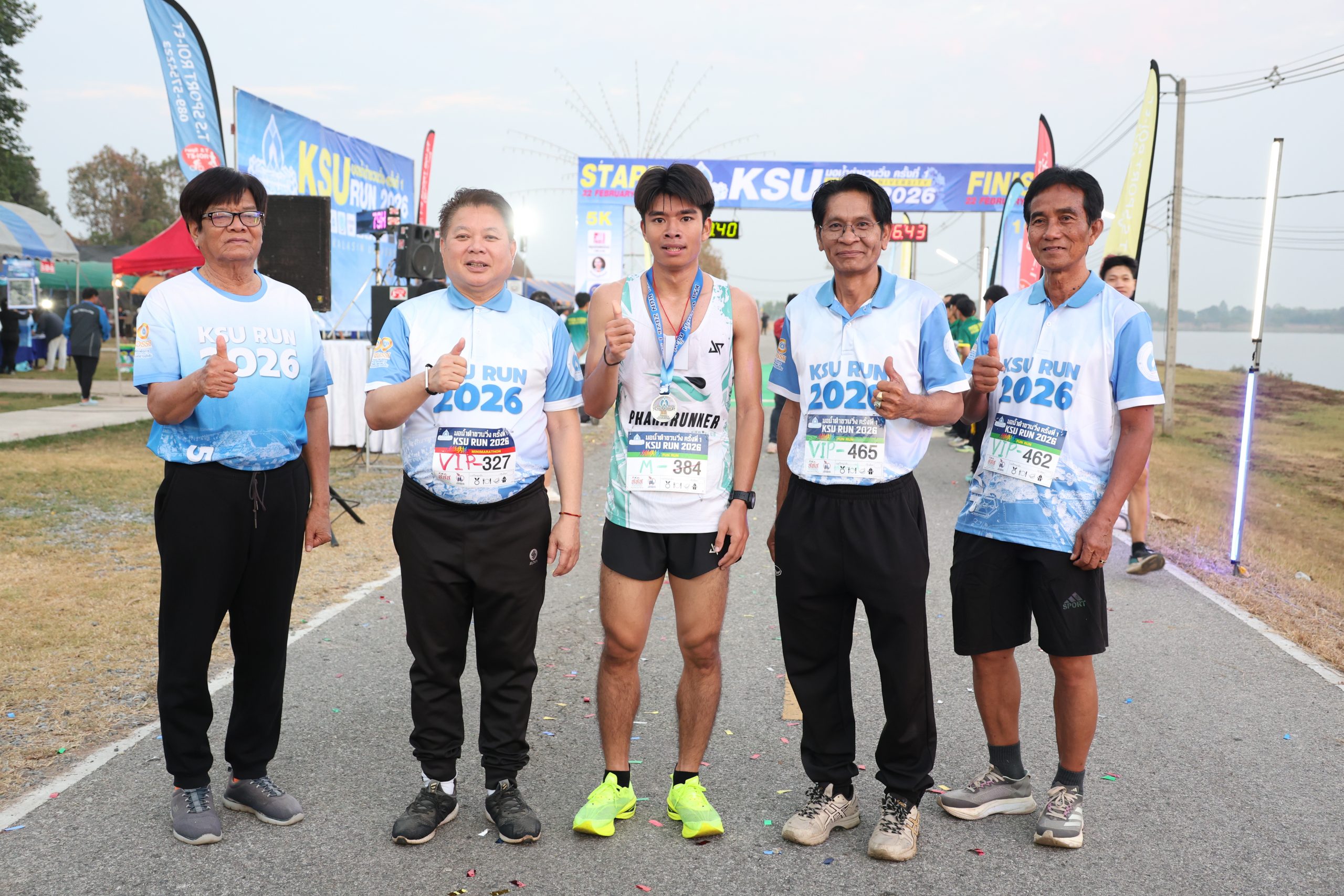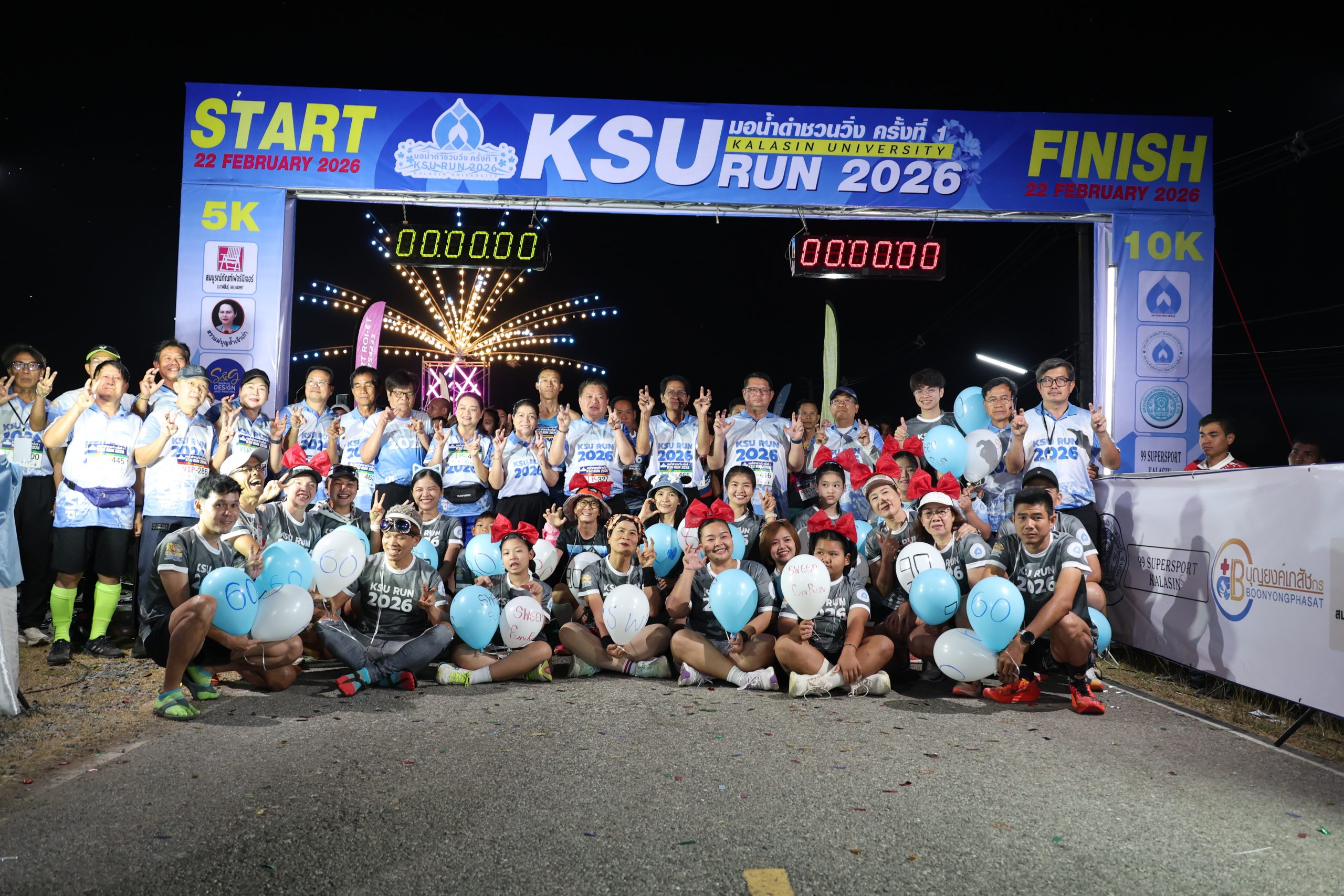 วันอาทิตย์ที่ 22 กุมภาพันธ์ 2569 ณ ศูนย์เทคโนโลยีเกษตรอัจฉริยะและนวัตกรรมเพื่อการพัฒนาท้องถิ่น (ศูนย์วิจัยและฝึกอบรมภูสิงห์) ตำบลภูดิน อำเภอเมือง จังหวัดกาฬสินธุ์ มหาวิทยาลัยกาฬสินธุ์ จัดพิธีเปิด “โครงการมอน้ำดำชวนวิ่ง ครั้งที่ 1 ประจำปี 2569” โดยได้รับเกียรติจาก นายธนภัทร ณ ระนอง รองผู้ว่าราชการจังหวัดกาฬสินธุ์ เป็นประธานในพิธี ท่ามกลางหัวหน้าส่วนราชการ ผู้แทนหน่วยงานภาครัฐ ภาคเอกชน ผู้สนับสนุนกิจกรรม คณาจารย์ บุคลากร นักศึกษา และประชาชนผู้เข้าร่วมกิจกรรมอย่างคึกคัก