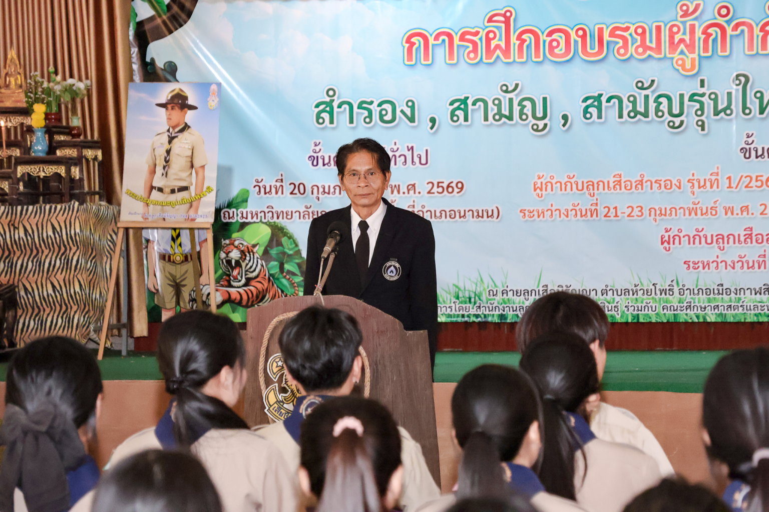 วันที่ 21 กุมภาพันธ์ 2569 เวลา 09.00 น. ณ ค่ายลูกเสือนิรัญญา จังหวัดกาฬสินธุ์ สำนักงานลูกเสือจังหวัดกาฬสินธุ์ ร่วมกับ คณะศึกษาศาสตร์และนวัตกรรมการศึกษา มหาวิทยาลัยกาฬสินธุ์ จัดพิธีเปิดการฝึกอบรมบุคลากรทางการลูกเสือ หลักสูตรผู้กำกับลูกเสือสำรอง ขั้นความรู้เบื้องต้น รุ่นที่ 1/2569 ณ ค่ายลูกเสือนิรัญญา จังหวัดกาฬสินธุ์