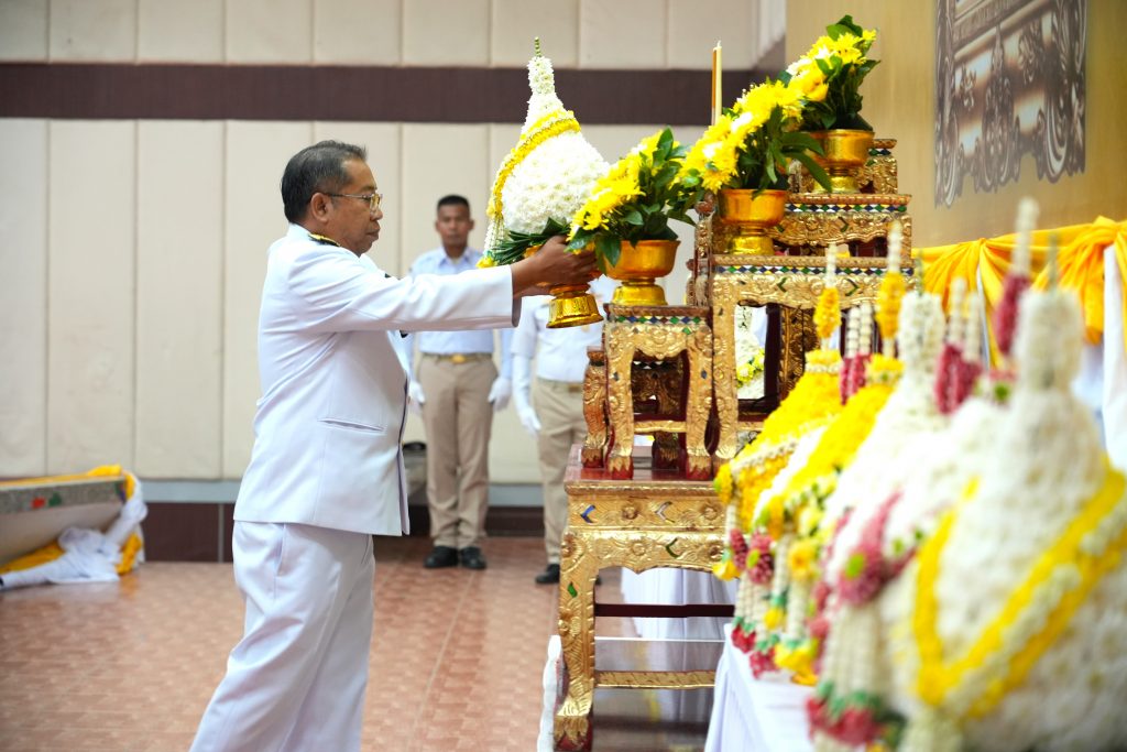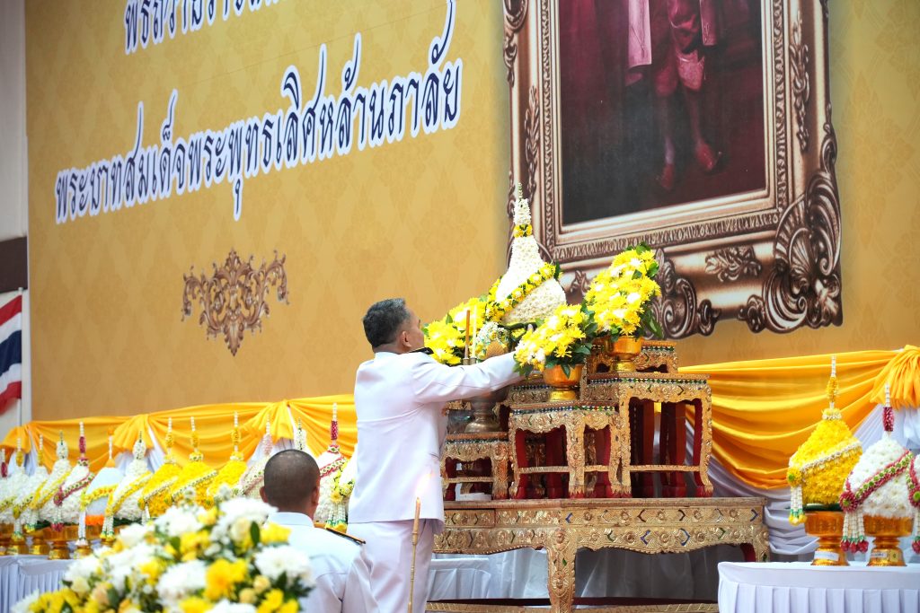 ม.กาฬสินธุ์ ร่วมพิธีสวดพระพุทธมนต์ พิธีทำบุญตักบาตรถวายพระราชกุศล และพิธีวางพุ่มดอกไม้ถวายราชสดุดี เนื่องในโอกาสวันที่ระลึกพระบาทสมเด็จพระพุทธเลิศหล้านภาลัย