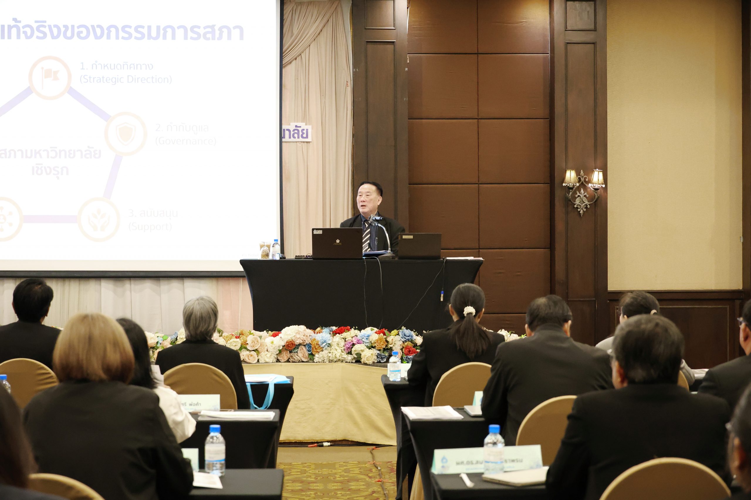 ดร.วิฑูรย์ สิมะโชคดี นายกสภามหาวิทยาลัยกาฬสินธุ์ กล่าวว่า เน้นย้ำว่าสภามหาวิทยาลัยมีบทบาทสำคัญยิ่งในการวางกรอบยุทธศาสตร์ การกำกับทิศทาง และการสร้างความมั่นคงทางวิชาการ เพื่อนำไปสู่การเป็นมหาวิทยาลัยที่มีคุณภาพและเป็นพลังสำคัญในการพัฒนาท้องถิ่นและประเทศอย่างยั่งยืน นอกจากนี้ยังได้รับเกียรติจากวิทยากรผู้ทรงคุณวุฒิ ได้แก่ ศาสตราจารย์สุรินทร์ คำฝอย รองผู้อำนวยการ สอวช. บรรยายเรื่องบทบาทการพัฒนาอุดมศึกษาไทย และรองศาสตราจารย์วีรพล ทองมา อธิการบดีมหาวิทยาลัยแม่โจ้ บรรยายเรื่องทิศทางการขับเคลื่อนพัฒนาท้องถิ่นในมิติด้านการเกษตร