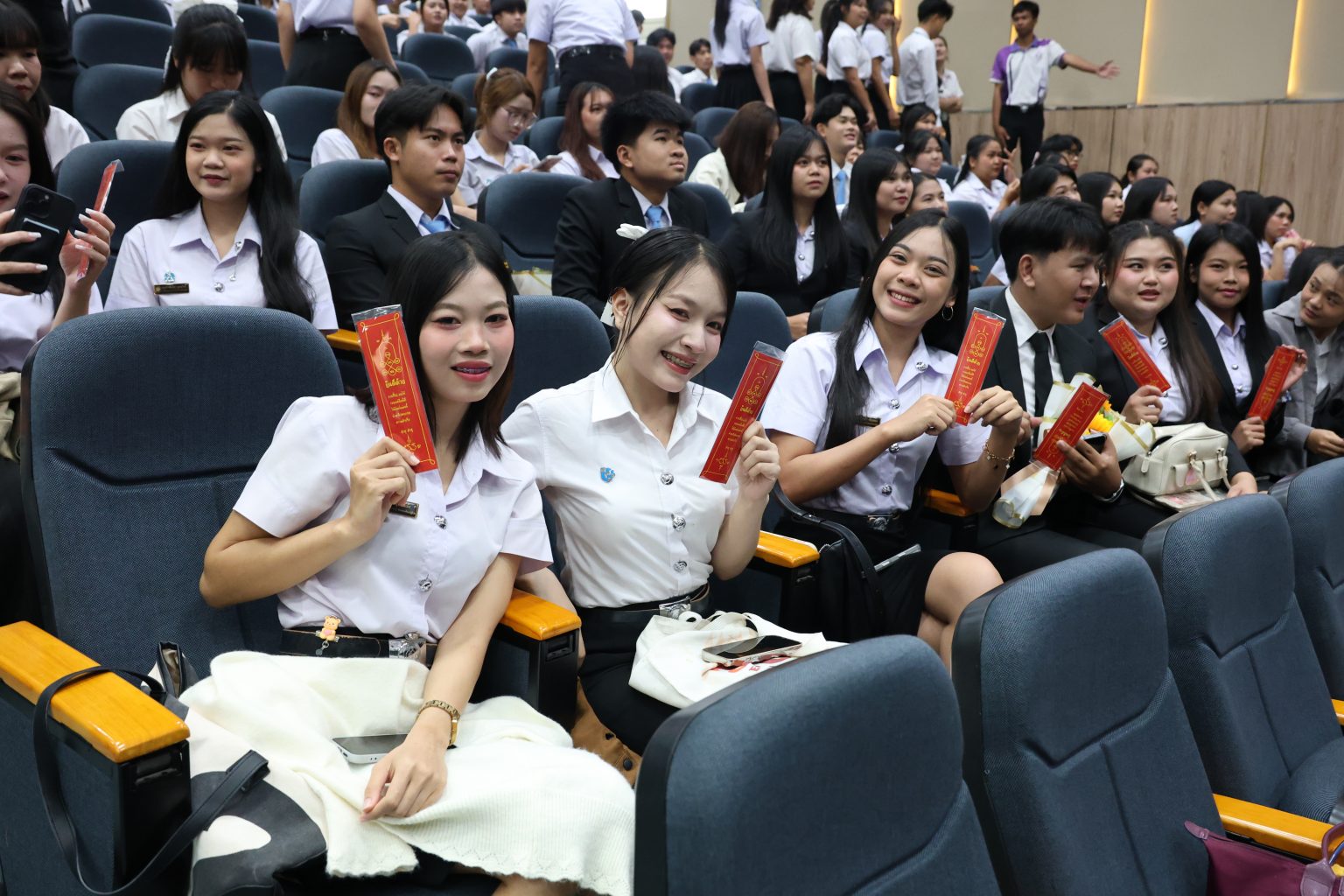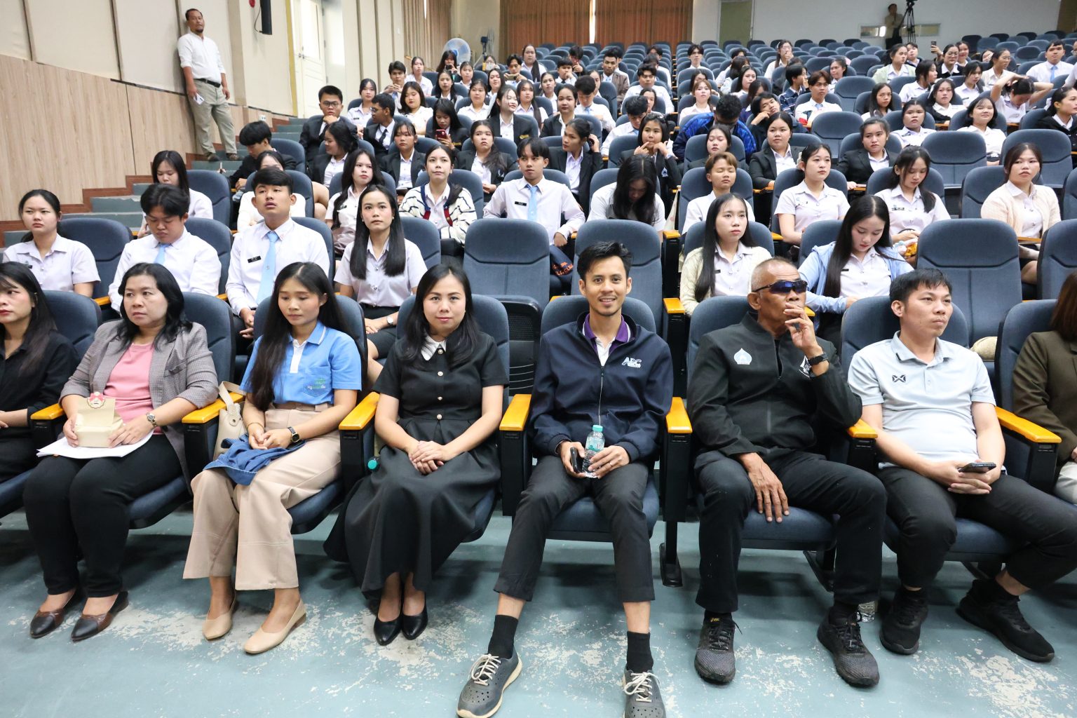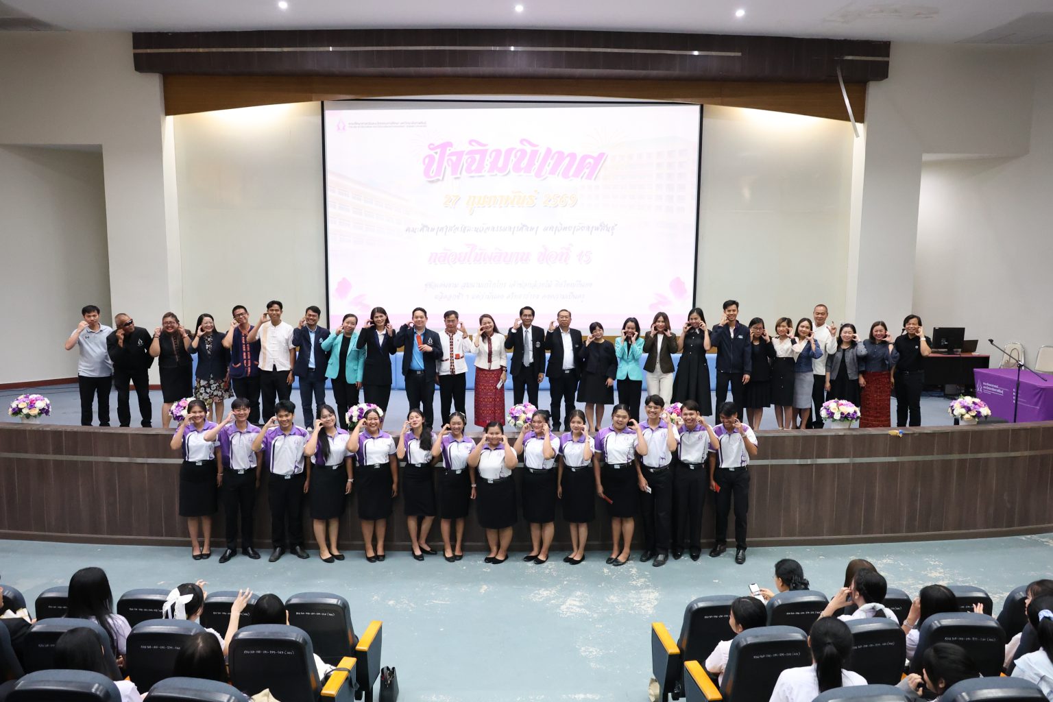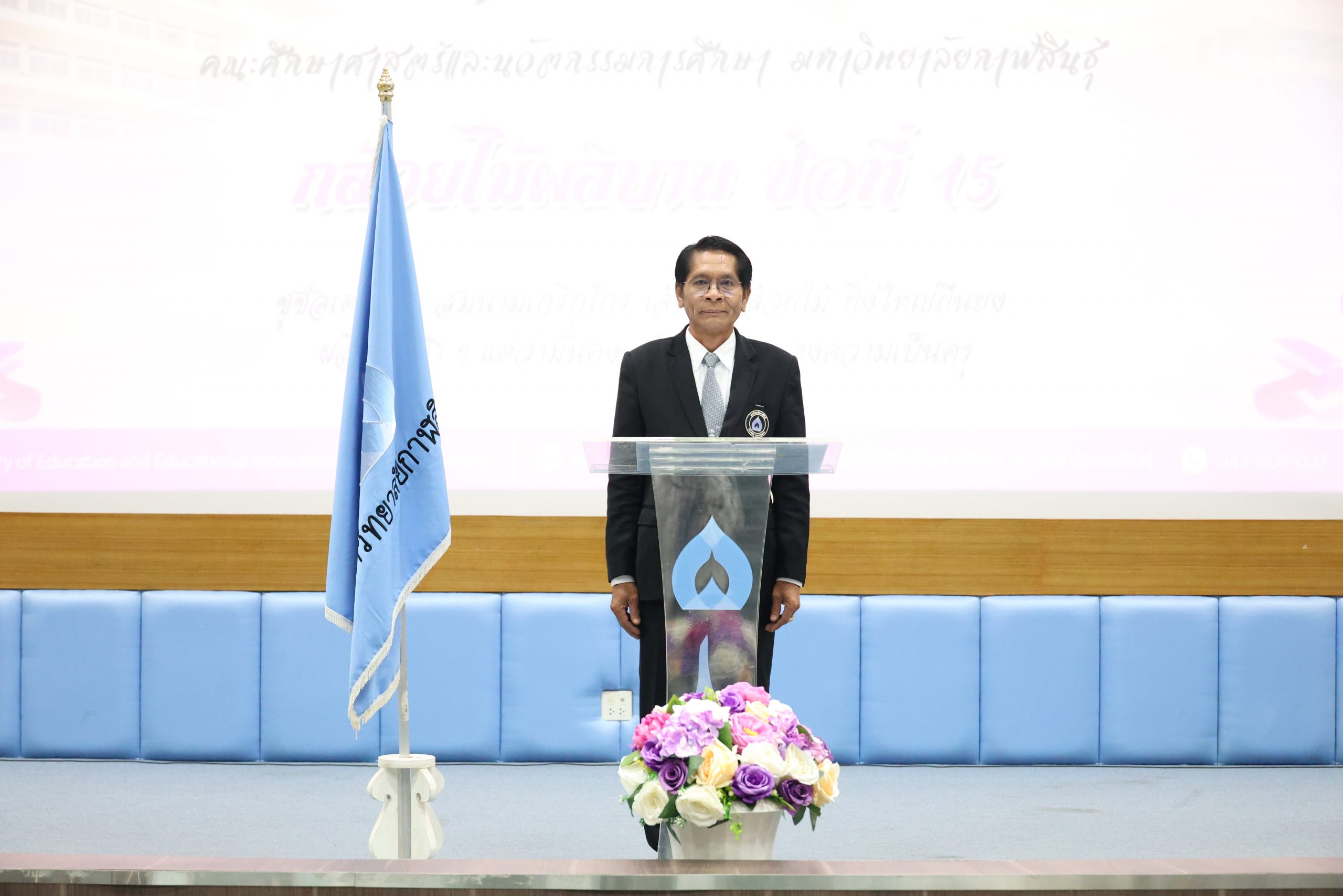 ภายในพิธีได้รับเกียรติจากคณบดี รองคณบดี ผู้ช่วยคณบดี ผู้อำนวยการ หัวหน้างาน คณาจารย์ บุคลากร และนักศึกษาว่าที่บัณฑิตคณะศึกษาศาสตร์และนวัตกรรมการศึกษา เข้าร่วมอย่างพร้อมเพรียง บรรยากาศเป็นไปด้วยความอบอุ่นและเปี่ยมด้วยความภาคภูมิใจ