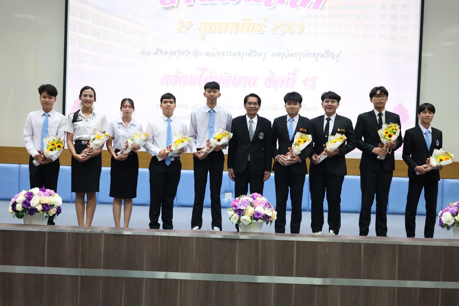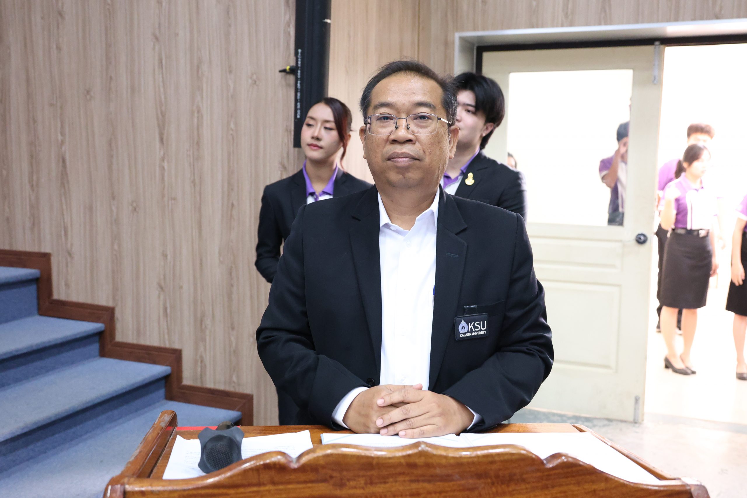 วันที่ 27 กุมภาพันธ์ 2569 เวลา 09.00 น. ณ ห้องเรียนรวม 3 อาคารบริการการศึกษาและบริการกลาง มหาวิทยาลัยกาฬสินธุ์ พื้นที่นามน โดยรองศาสตราจารย์ ดร.สุพรรณ สุดสนธิ์ อธิการบดีมหาวิทยาลัยกาฬสินธุ์ ให้เกียรติเป็นประธานในพิธีเปิด “โครงการปัจฉิมนิเทศนักศึกษา ภาคการศึกษาที่ 2 ปีการศึกษา 2568” ซึ่งจัดขึ้นเพื่อเตรียมความพร้อมให้แก่นักศึกษาก่อนสำเร็จการศึกษา
