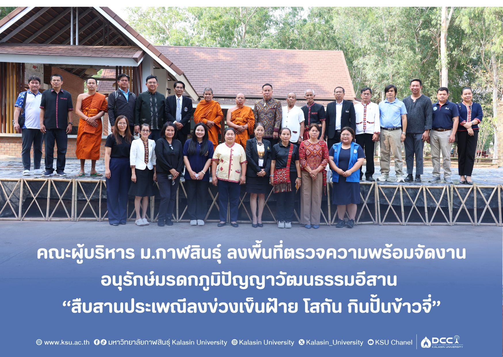 คณะผู้บริหาร ม.กาฬสินธุ์ ลงพื้นที่ตรวจความพร้อมจัดงานอนุรักษ์มรดกภูมิปัญญาวัฒนธรรมอีสาน “สืบสานประเพณีลงข่วงเข็นฝ้าย โสกัน กินปั้นข้าวจี่”