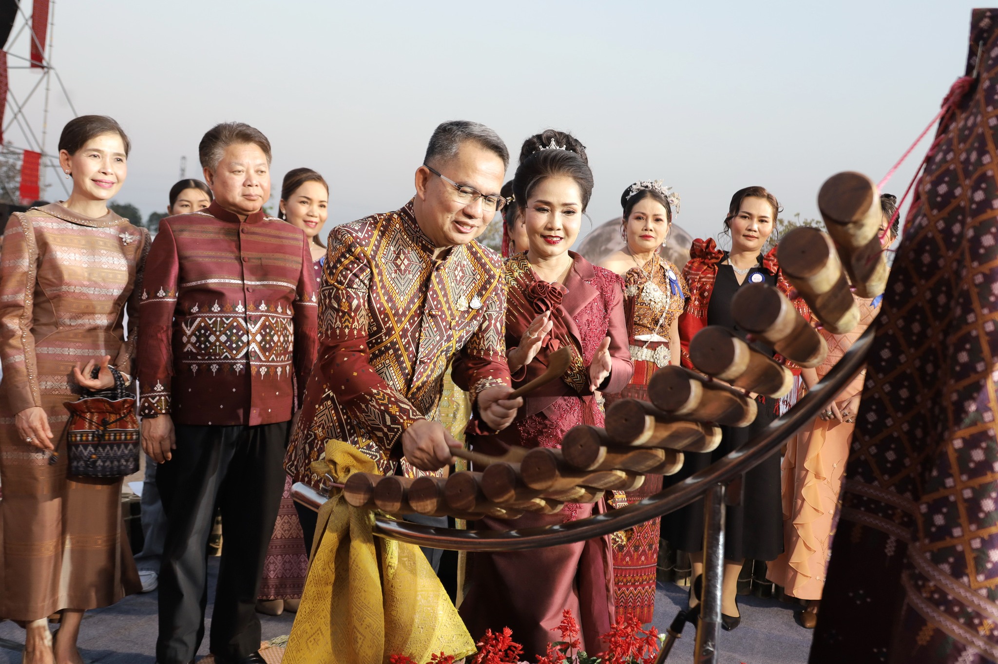 เมื่อวันที่ 8 มีนาคม 2569 ณ เวทีกลาง งานมหกรรมโปงลาง แพรวา และงานกาชาด จังหวัดกาฬสินธุ์ ประจำปี 2569 ศูนย์ราชการจังหวัดกาฬสินธุ์ ตำบลกาฬสินธุ์ อำเภอเมืองกาฬสินธุ์ จังหวัดกาฬสินธุ์ อธิการบดีมหาวิทยาลัยกาฬสินธุ์ มอบหมายให้ ผู้ช่วยศาสตราจารย์มนชยา สภานุชาต ผู้ช่วยอธิการบดีมหาวิทยาลัยกาฬสินธุ์ พร้อมด้วยบุคลากร และนักศึกษา ร่วมแสดงแบบผ้าไทย ผ้าพื้นเมืองประจำถิ่น ของจังหวัดกาฬสินธุ์ “พราวพัสตรา แพรวากาฬสินธุ์ Silk Soul Sound @kalasin” โดยมี นายสุวรรธณ์  เข็มธนเพ็ชร  ผู้ว่าราชการจังหวัดกาฬสินธุ์ เป็นประธานตีโปงลาง เปิดงานแสดงแบบผ้าไทย ผ้าพื้นเมืองประจำถิ่น ของจังหวัดกาฬสินธุ์ “พราวพัสตรา แพรวากาฬสินธุ์ Silk Soul Sound @kalasin” ซึ่งจังหวัดกาฬสินธุ์จัดขึ้นเพื่อส่งเสริมผ้าไหมแพรวา  ผ้าภูไท และผ้าพื้นเมืองอื่นๆของจังหวัดกาฬสินธุ์ ให้เป็นที่รู้จักอย่างกว้างขวาง  สามารถสร้างงาน สร้างรายได้ให้กับกลุ่มทอผ้าในจังหวัดกาฬสินธุ์ และที่สำคัญเป็นการจัดหารายได้เพื่อสนับสนุนการดำเนินกิจกรรมของชมรมแม่บ้านมหาดไทยจังหวัดกาฬสินธุ์ ในการช่วยเหลือเหลือผู้ประสบภัย ผู้ด้อยโอกาส กลุ่มผู้เปราะบางต่าง ๆ  มีผู้เข้าร่วมเดินแบบ นางวรชาดา  เข็มธนเพ็ชร  ประธานแม่บ้านมหาดไทยจังหวัดกาฬสินธุ์ นายธนภัทร  ณ ระนอง  นายผดุงศักดิ์  อิ่มเอิบ  รองผู้ว่าราชการจังหวัดกาฬสินธุ์ นายสันติ  จัตุพันธ์  ปลัดจังหวัดกาฬสินธุ์  คณะกรรมการเหล่ากาชาดจังหวัดกาฬสินธุ์ สมาชิกชมรมแม่บ้านมหาดไทยจังหวัดกาฬสินธุ์ ร่วมแสดงแบบผ้าไทย  ซึ่งกิจกรรมแสดงแบบผ้าไทยเป็นกิจกรรมที่จัดขึ้นในงานมหกรรมโปงลาง แพรวา และงานกาชาดจังหวัดกาฬสินธุ์ ประจำปี 2569  โดยได้รับความสนใจจากหัวหน้าส่วนราชการ องค์กรปกครองส่วนท้องถิ่น   ภาคเอกชน  และประชาชนชาวกาฬสินธุ์ ร่วมเดินแบบรวมจำนวนทั้งสิ้นกว่า 180 คน
