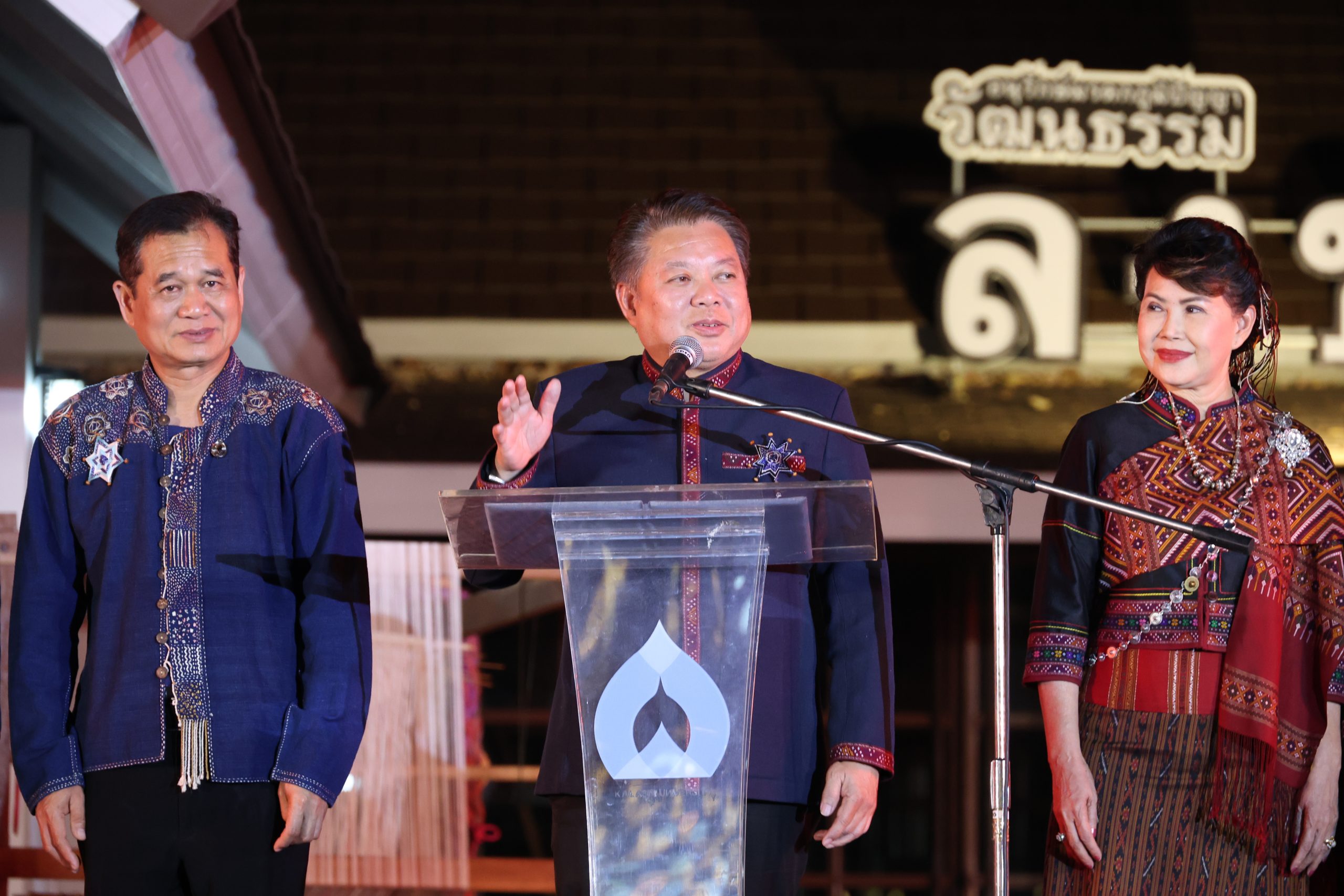 ด้าน นายธนภัทร ณ ระนอง รองผู้ว่าราชการจังหวัดกาฬสินธุ์ กล่าวว่า จังหวัดกาฬสินธุ์ถือเป็นเมืองแห่งอู่อารยธรรมที่มีเอกลักษณ์โดดเด่น ทั้งด้านวิถีชีวิต ศิลปวัฒนธรรม และภูมิปัญญาท้องถิ่น โดยเฉพาะวิถีการลงข่วงและงานหัตถศิลป์บนผืนผ้า ไม่ว่าจะเป็นผ้าแพรวาหรือผ้าผู้ไท ซึ่งเป็นมรดกทางวัฒนธรรมอันล้ำค่าที่สืบทอดจากบรรพบุรุษ การที่มหาวิทยาลัยกาฬสินธุ์เข้ามามีบทบาทสำคัญในการขับเคลื่อนการอนุรักษ์และต่อยอดภูมิปัญญาเหล่านี้ โดยผสมผสานความคิดสร้างสรรค์ของคนรุ่นใหม่ ถือเป็นการผลักดันทุนทางวัฒนธรรมให้เกิดคุณค่าทั้งด้านสังคมและเศรษฐกิจ และสอดคล้องกับแนวทางการส่งเสริม Soft Power ทางวัฒนธรรมของประเทศ