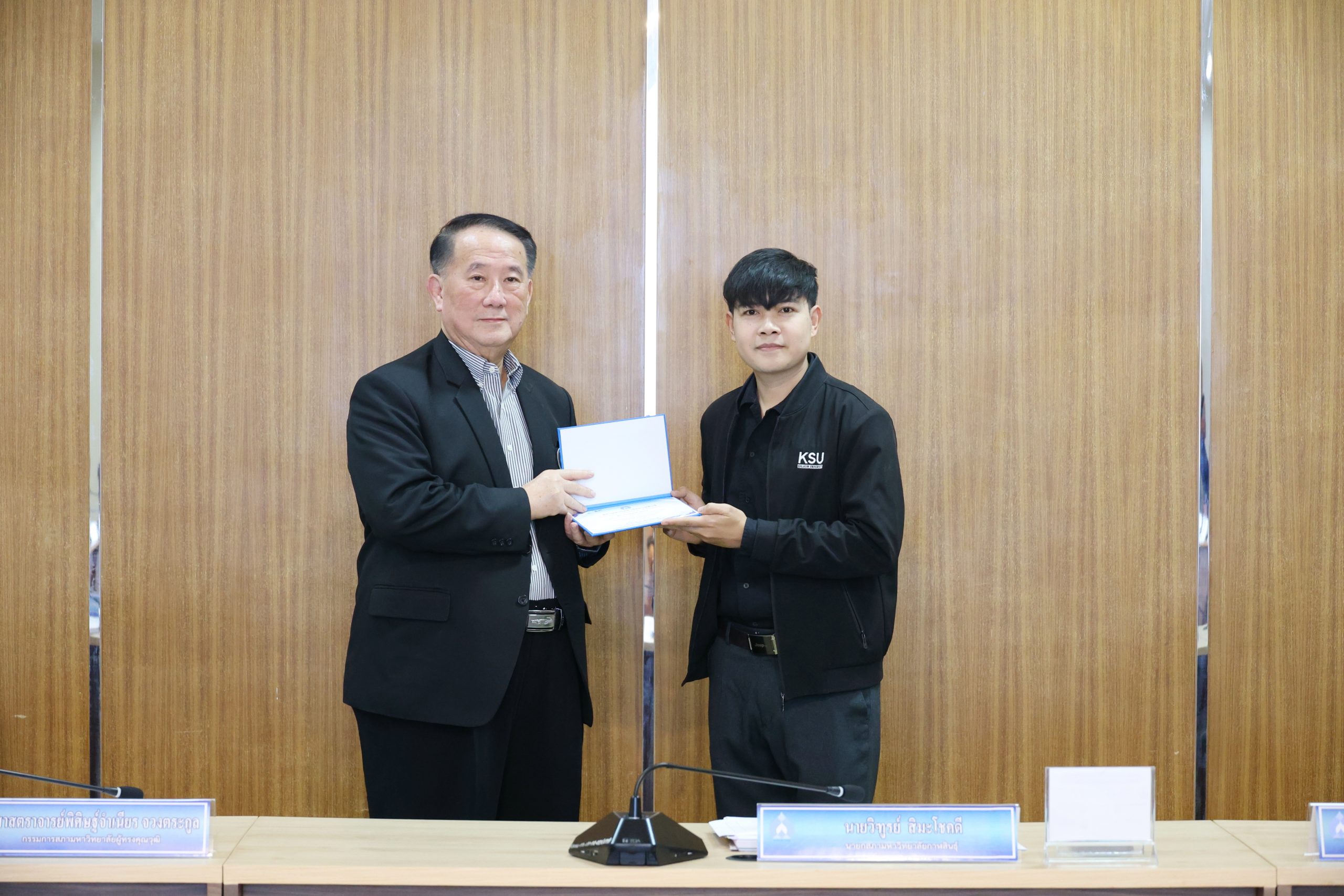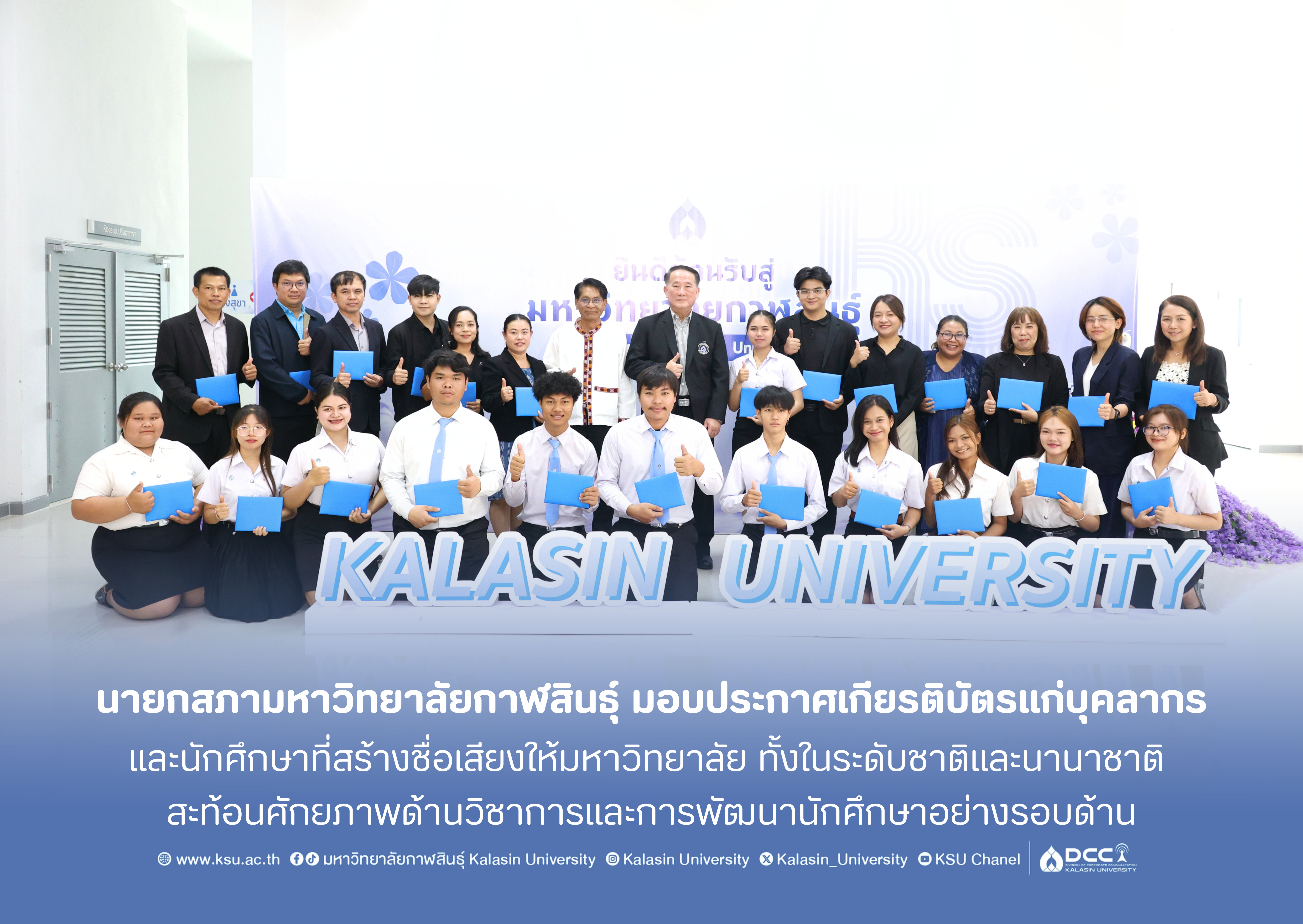 นายกสภามหาวิทยาลัยกาฬสินธุ์ มอบประกาศเกียรติบัตรแก่บุคลากรและนักศึกษาที่สร้างชื่อเสียงให้มหาวิทยาลัย ทั้งในระดับชาติและนานาชาติ สะท้อนศักยภาพด้านวิชาการและการพัฒนานักศึกษาอย่างรอบด้าน