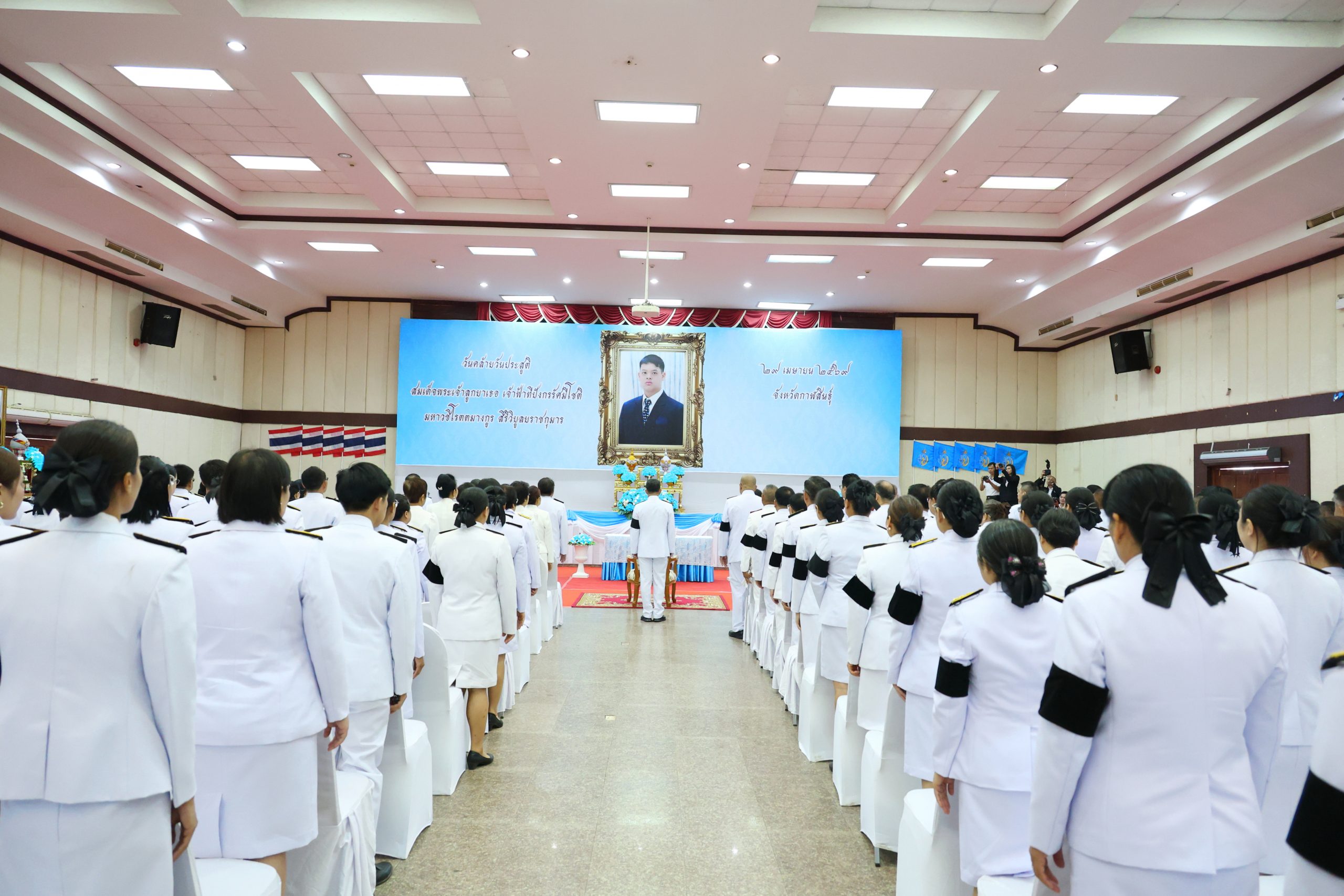 วันนี้ (29 เมษายน 2569) เวลา 07.30 น. ณ หอประชุมเฉลิมพระเกียรติ 80 พรรษามหาราชา ศาลางจังหวัดกาฬสินธุ์ (หลังเก่า) ผู้ช่วยศาสตราจารย์ ดร.คมสันทิ์ ขจรปัญญาไพศาล รองอธิการบดีมหาวิทยาลัยกาฬสินธุ์ นำบุคลากรมหาวิทยาลัยกาฬสินธุ์ เข้าร่วมพิธีทำบุญตักบาตรถวายพระราชกุศล และพิธีถวายพระพรชัยมงคลเนื่องในวันคล้ายวันประสูติ สมเด็จพระเจ้าลูกยาเธอ เจ้าฟ้าทีปังกรรัศมีโชติ มหาวชิโรตตมางกูร สิริวิบูลยราชกุมาร โดยมี นายสุวรรธณ์ เข็มธนเพ็ชร ผู้ว่าราชการจังหวัดกาฬสินธุ์ เป็นประธานในพิธี ผู้เข้าร่วมพิธีประกอบด้วย รองผู้ว่าราชการจังหวัดกาฬสินธุ์ หัวหน้าส่วนราชการ ข้าราชการ อัยการ ศาล ทหาร ตำรวจ ประชาชนชาวจังหวัดกาฬสินธุ์ เข้าร่วมพิธีโดยพร้อมเพรียงกัน เพื่อน้อมรำลึกถึงพระมหากรุณาธิคุณ