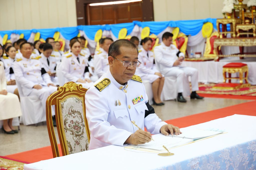 พิธีเริ่มต้นด้วย โดย นายสุวรรธณ์ เข็มธนเพ็ชร ผู้ว่าราชการจังหวัดกาฬสินธุ์ ลงนามถวายพระพรชัยมงคล เบื้องหน้าพระรูปสมเด็จพระเจ้าลูกยาเธอ เจ้าฟ้าทีปังกรรัศมีโชติ มหาวชิโรตตมางกูร สิริวิบูลยราชกุมาร จากนั้นเป็นการประกอบพิธีทำบุญตักบาตรพระสงฆ์และสามเณร เพื่อถวายเป็นพระราชกุศล เพื่อเป็นการส่งเสริมและปลูกฝังจิตสำนึกในการแสดงความจงรักภักดีต่อสถาบันพระมหากษัตริย์ ซึ่งเป็นเสาหลักและศูนย์รวมจิตใจของปวงชนชาวไทย