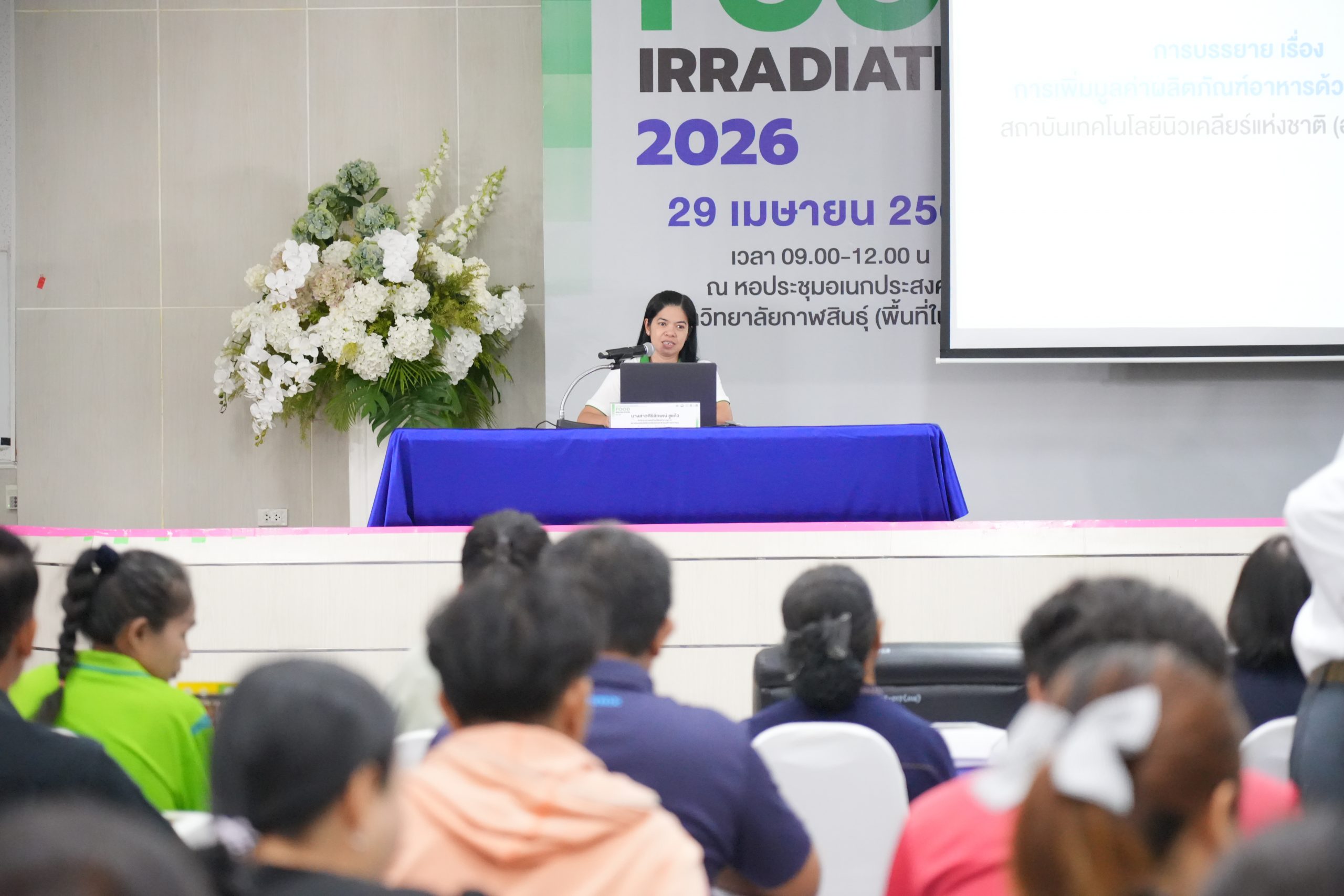 วันที่ 29 เมษายน 2569 ณ หอประชุมเอนกประสงค์ มหาวิทยาลัยกาฬสินธุ์ มหาวิทยาลัยกาฬสินธุ์ ร่วมกับสถาบันเทคโนโลยีนิวเคลียร์แห่งชาติ (องค์การมหาชน) จัดกิจกรรมถ่ายทอดเทคโนโลยี “การสร้างมูลค่าให้กับอาหารพื้นถิ่นและอาหารฟังก์ชันด้วยการฉายรังสี” ภายใต้แนวคิด “พัฒนาอาหารพื้นถิ่น สู่มาตรฐานสากล เพิ่มมูลค่าเศรษฐกิจชุมชน ด้วยเทคโนโลยีฉายรังสี” โดยมีผู้บริหาร คณาจารย์ ผู้ประกอบการ และผู้สนใจเข้าร่วมทั้งในสถานที่และผ่านระบบออนไลน์