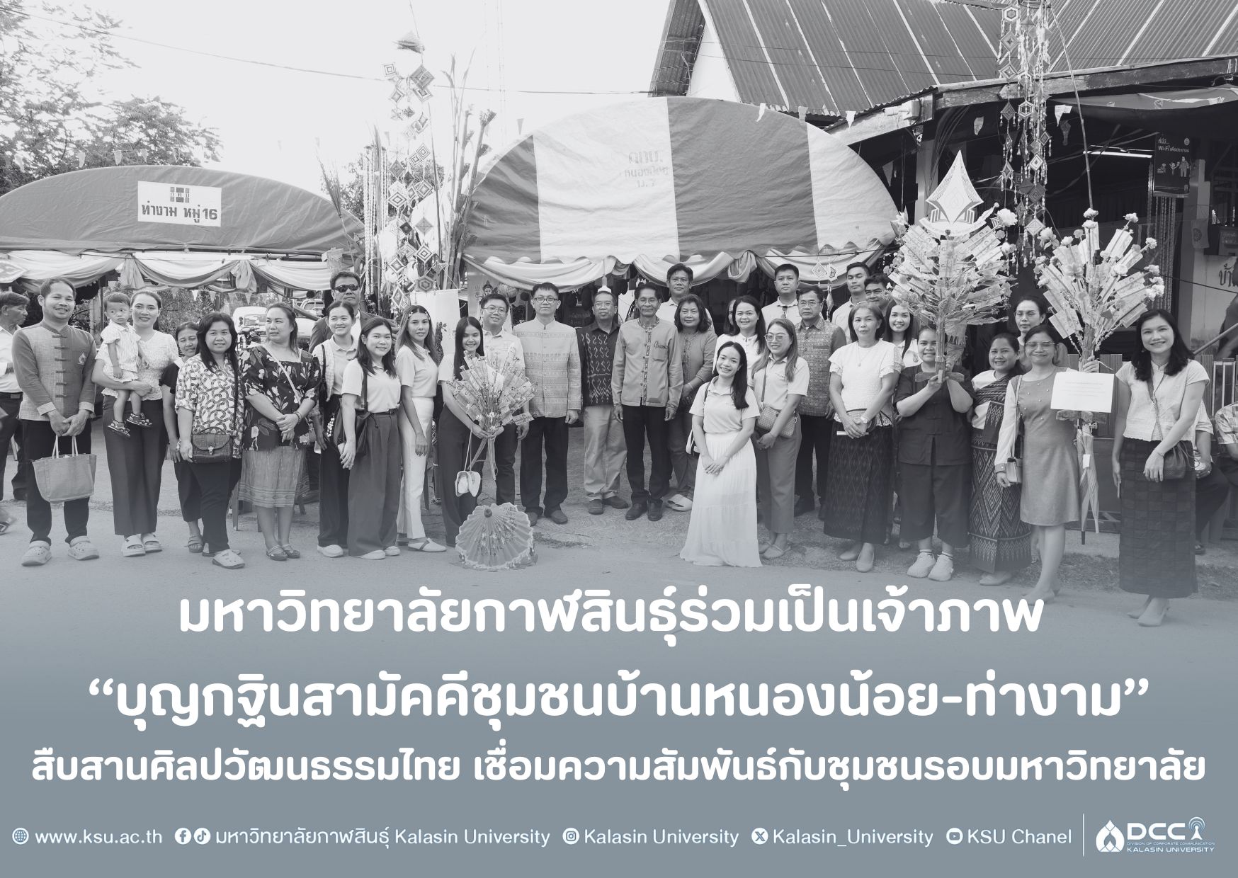 ม.กาฬสินธุ์ร่วมเป็นเจ้าภาพ “บุญกฐินสามัคคีชุมชนบ้านหนองน้อย” สืบสานศิลปวัฒนธรรมไทย เชื่อมความสัมพันธ์กับชุมชนรอบมหาวิทยาลัย